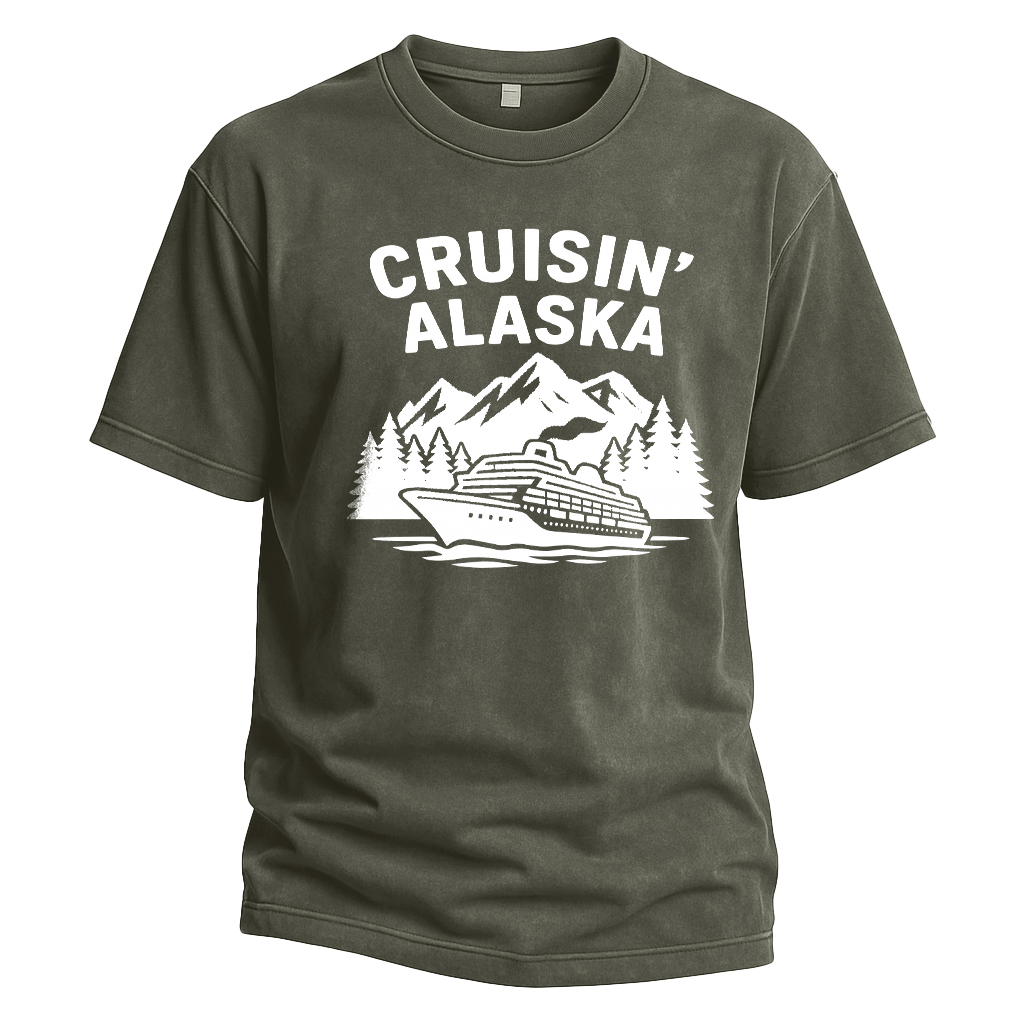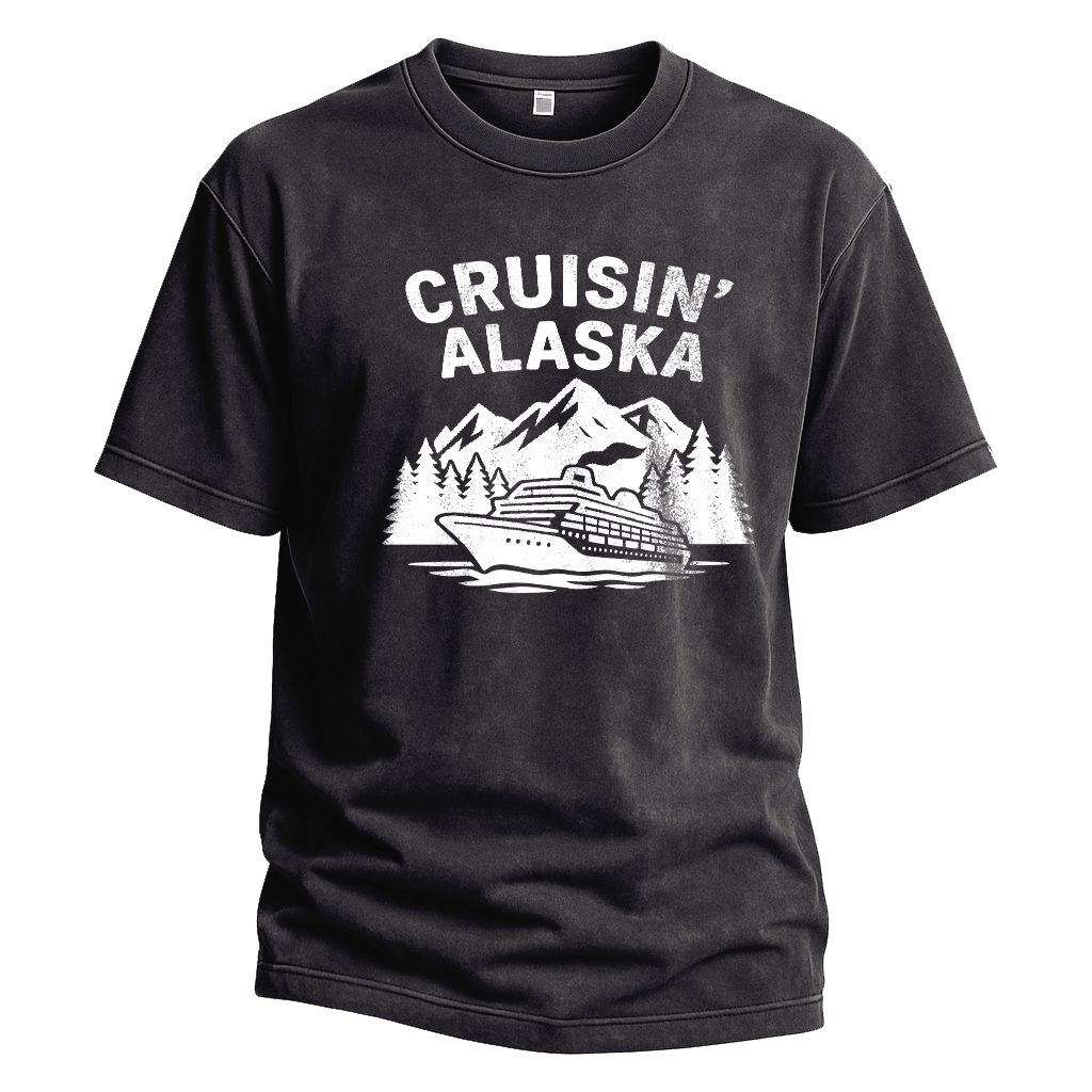 Precio regular $ 476.00 MXNA chill breeze, towering pines, and a cruise liner carving through icy waters — it’s Alaska, your way. This clean and minimalist tee features a bold graphic of a cruise ship sailing past mountain peaks and forest silhouettes, all under the proud headline: “Cruisin’ Alaska.” It’s a perfect souvenir or wearable memory for your northern escape.