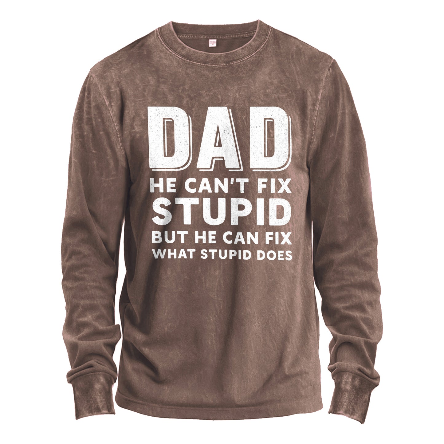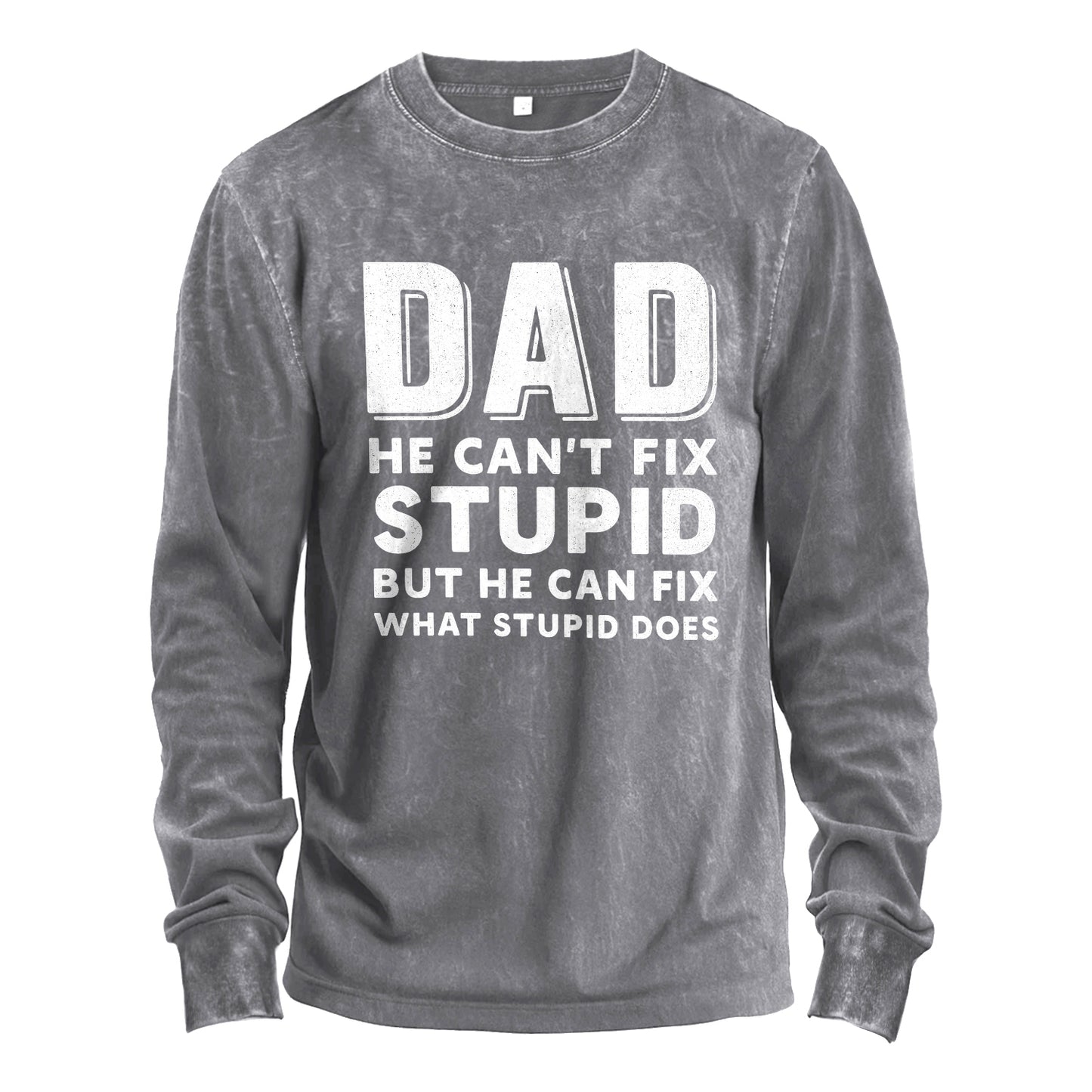 Precio regular $ 441.00 MXNFor the fixer with a sense of humor. This vintage-washed long sleeve reads: “Dad — he can’t fix stupid, but he can fix what stupid does.” Made from hefty 230g 100% cotton, it’s soft, durable, and perfect for shop days or weekend runs.