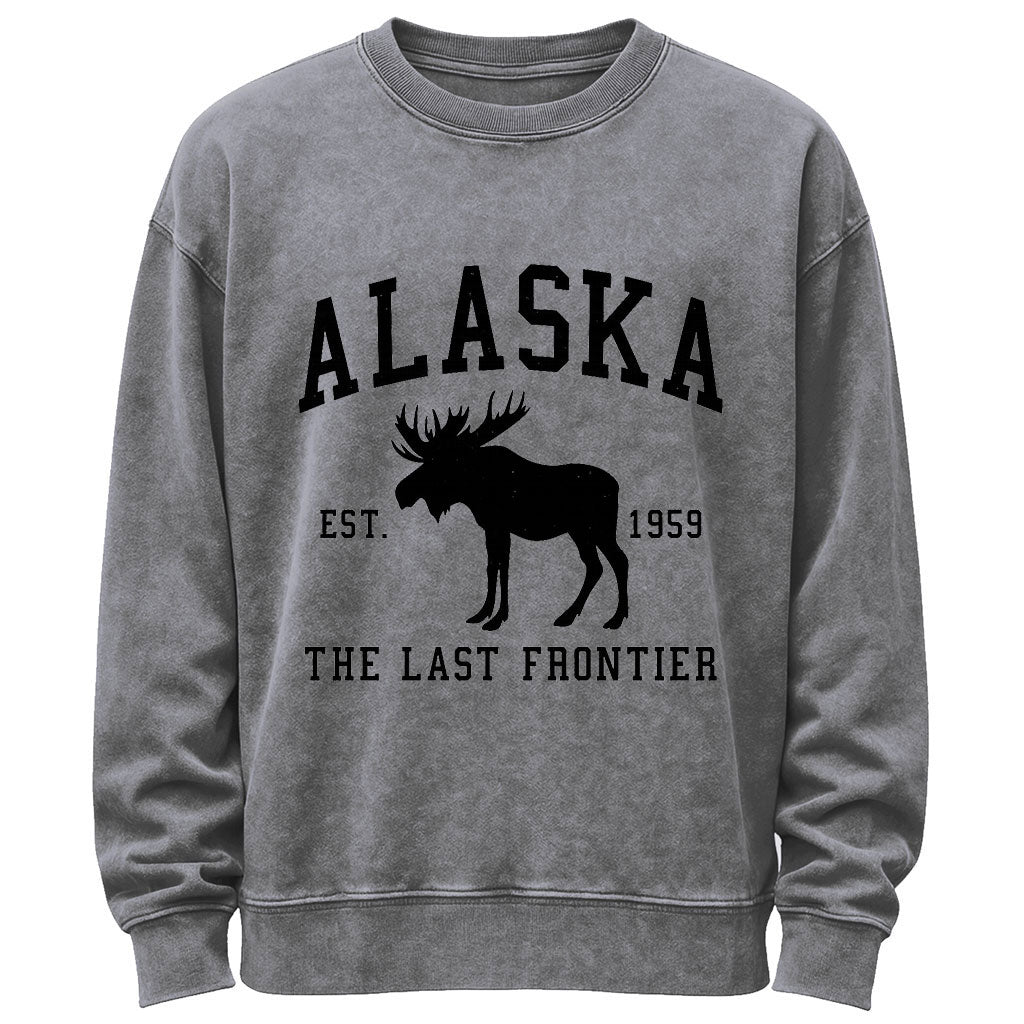 Precio regular $ 613.00 MXNLouMark’s “Alaska – The Last Frontier” sweatshirt pays homage to the northern wilderness and rugged outdoor life. Featuring a proud moose silhouette with “EST. 1959” typography, this heavyweight pullover captures the free, untamed spirit of Alaska. Crafted from an 80% cotton, 20% polyester blend, it’s soft, warm, and built to last through cold adventures.