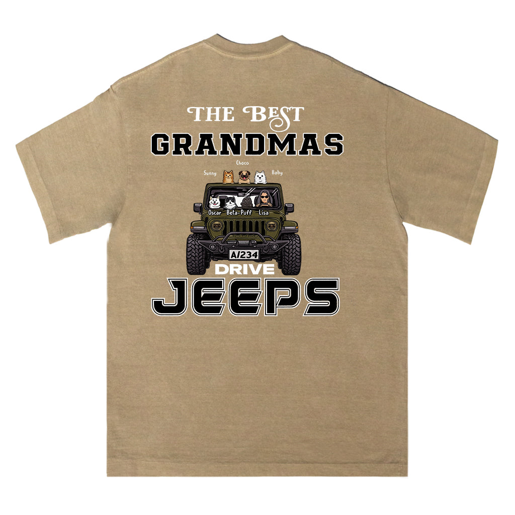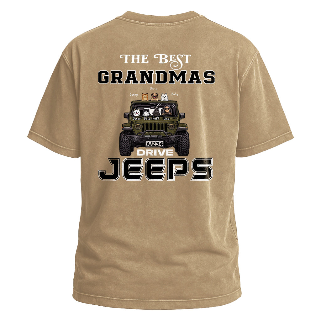 Precio regular $ 476.00 MXNCelebrate adventurous grandmas with LouMark’s Best Grandmas Drive Jeeps Tee. This washed brown shirt features a vintage-style back graphic of a rugged Jeep with four dogs inside and the text “THE BEST GRANDMAS DRIVE JEEPS.” Made from 100% cotton, it offers comfortable casual wear with a playful, outdoor spirit.