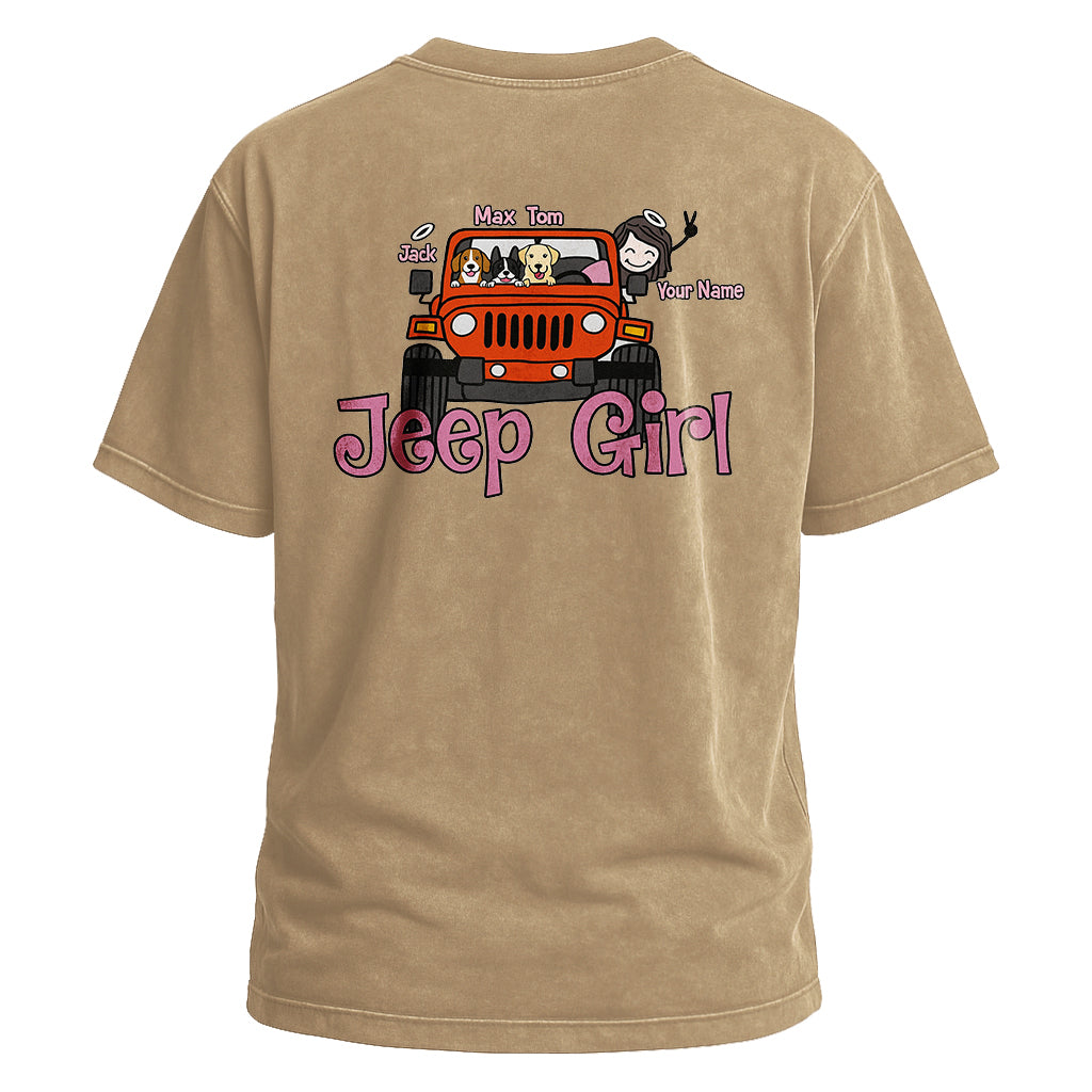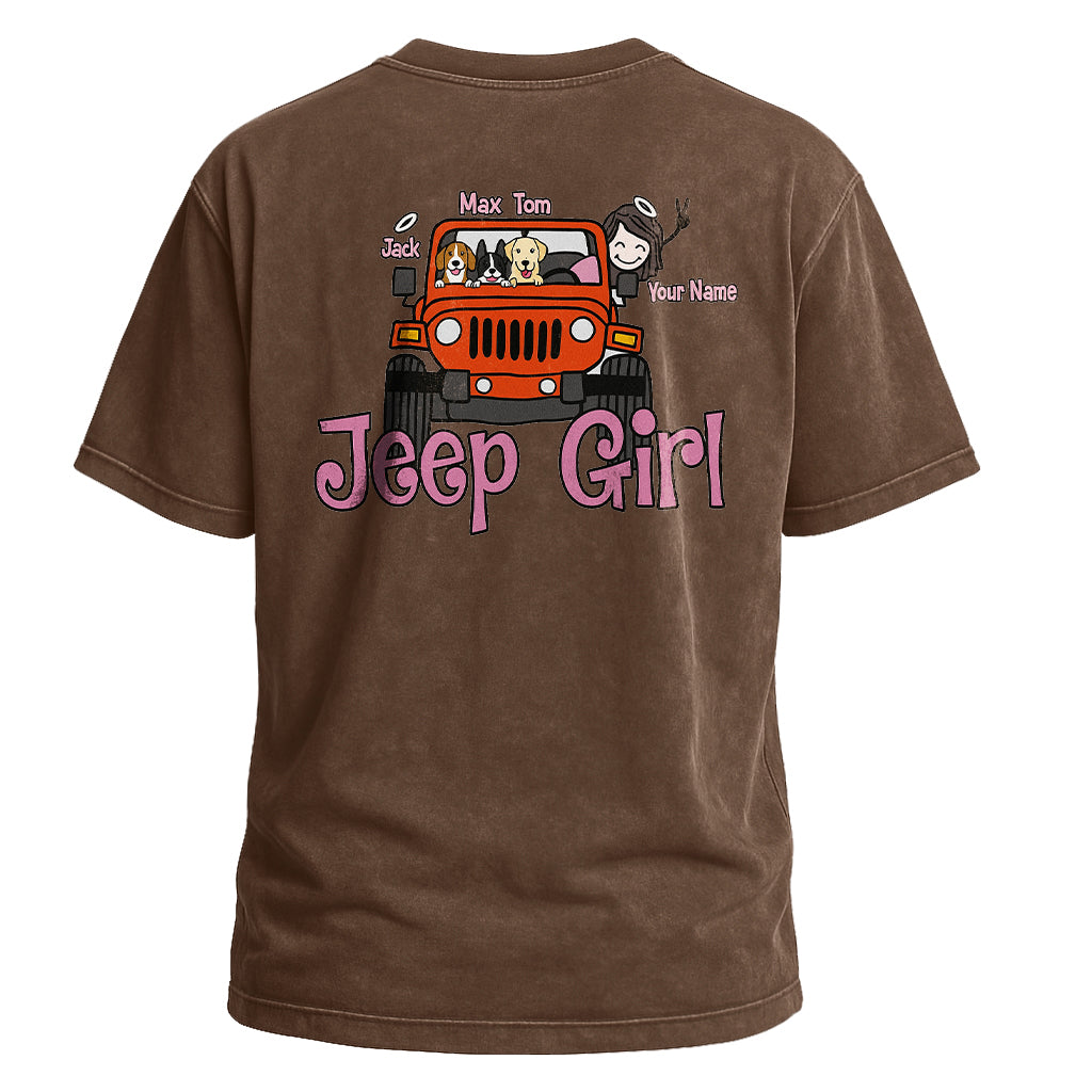 Precio regular $ 473.00 MXNShow your Jeep pride with LouMark’s Jeep Girl Graphic Tee. This washed brown shirt features a playful vintage-style back graphic of an orange Jeep with four dogs inside, labeled with their names, and the bold text “Jeep Girl” in pink. Made from 100% cotton, it offers casual comfort with a fun outdoor vibe.