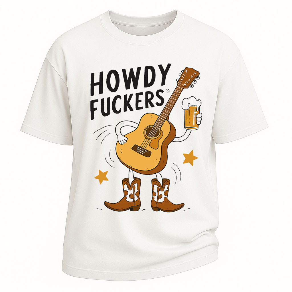 Howdy Fuckers Cowboy Guitar Graphic T-shirt