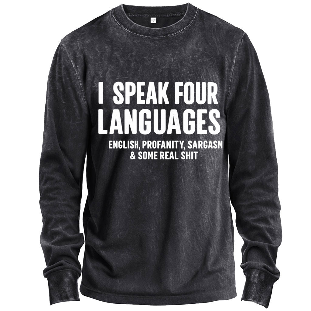 Lustiges Langarmshirt „Ich spreche vier Sprachen“