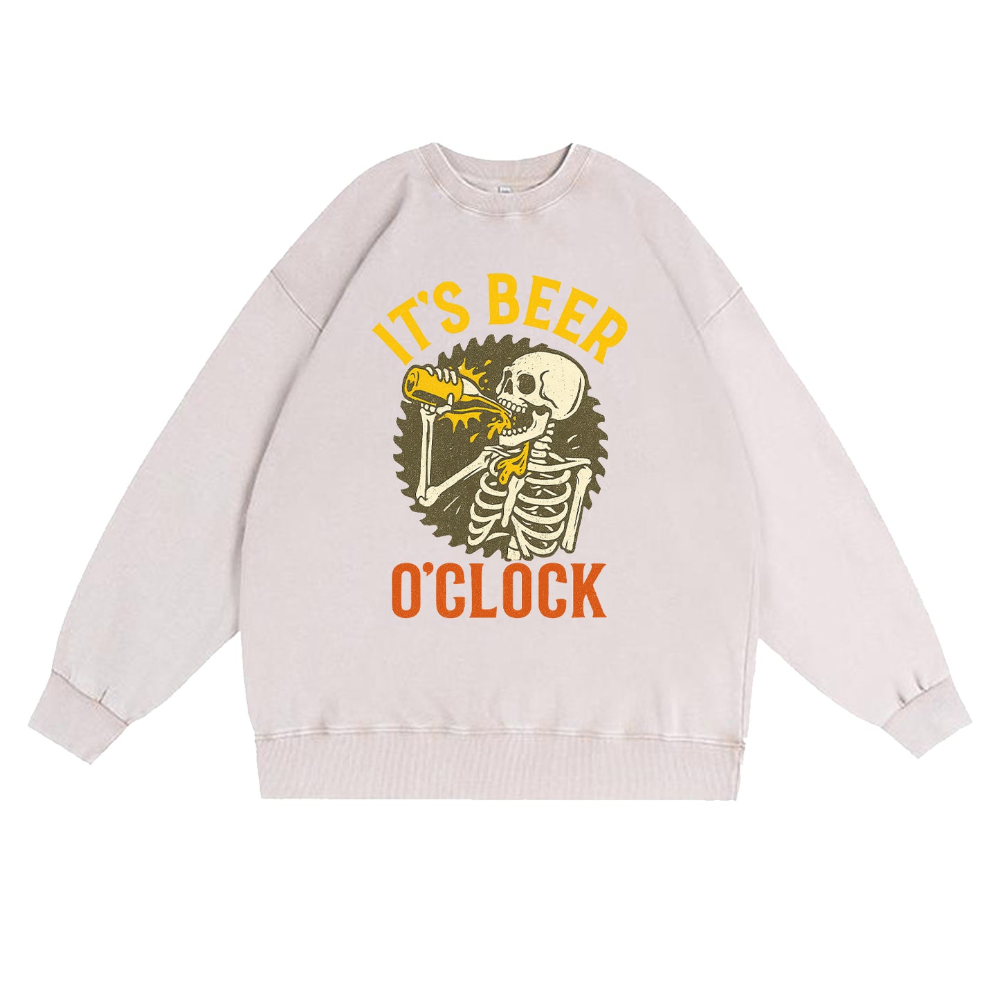 Regulärer Preis $ 793.00 MXNMach's auf – gute Laune garantiert! Dieses schwarze Sweatshirt im Vintage-Look zeigt einen Retro-Print: Ein Skelett kippt eine Flasche Bier, dazu der goldene Schriftzug „IT'S BEER“ und das leuchtende orangefarbene „O'CLOCK“. Gefertigt aus robustem 350-g-Fleece (80 % Baumwolle / 20 % Polyester) für ein weiches, angenehmes Tragegefühl direkt nach dem Auspacken.