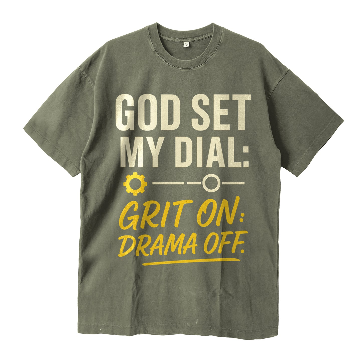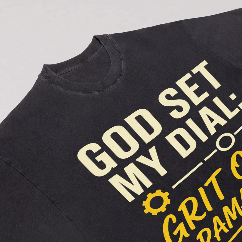 Regular price $ 476.00 MXNSet your settings to unstoppable. LouMark’s God Set My Dial Tee features bold cream and gold typography that declares: “GOD SET MY DIAL: GRIT ON, DRAMA OFF.” Vintage-washed black fabric delivers that lived-in look with heavyweight comfort in 260g cotton.