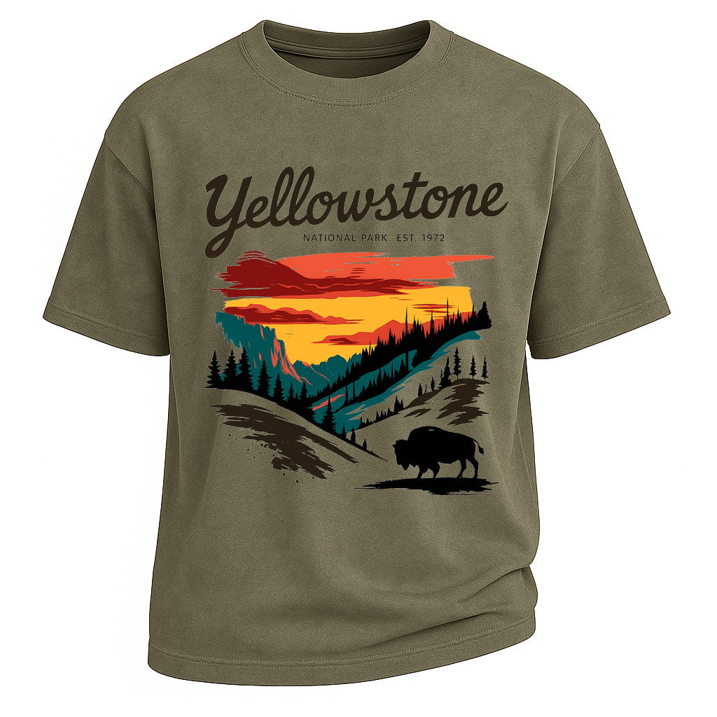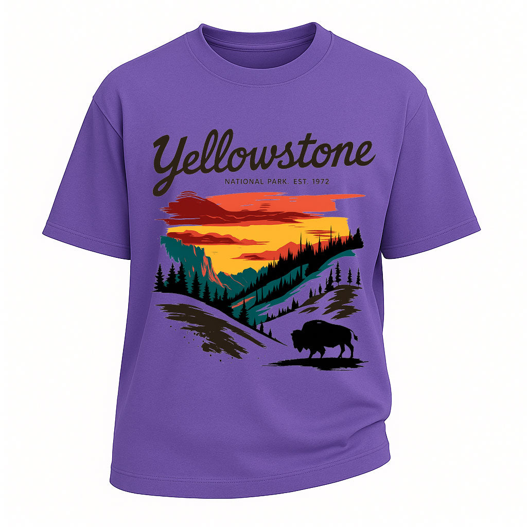 Yellowstone Sunset Buffalo Nature Graphic T-shirt
