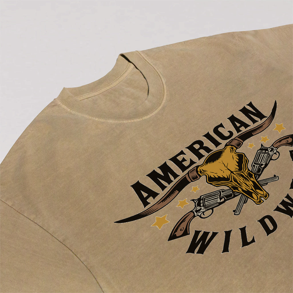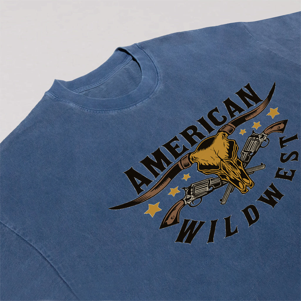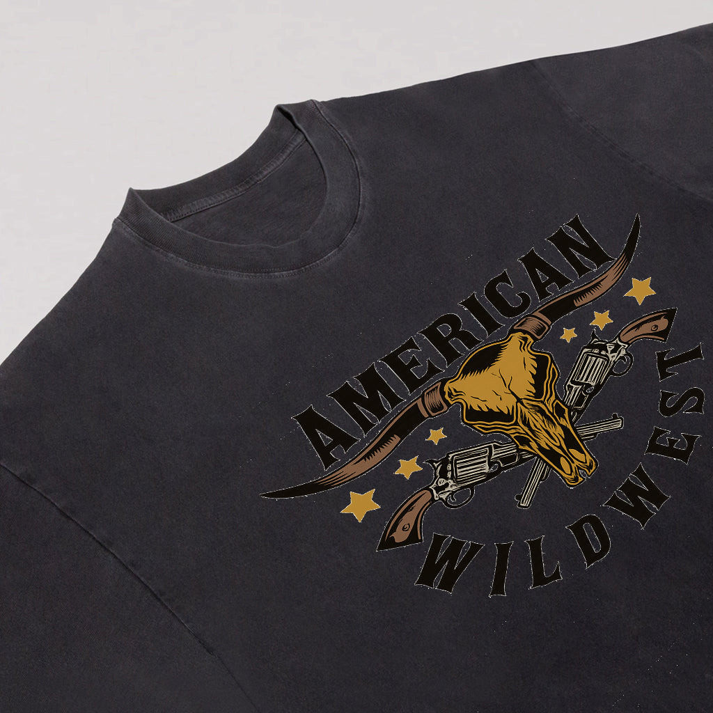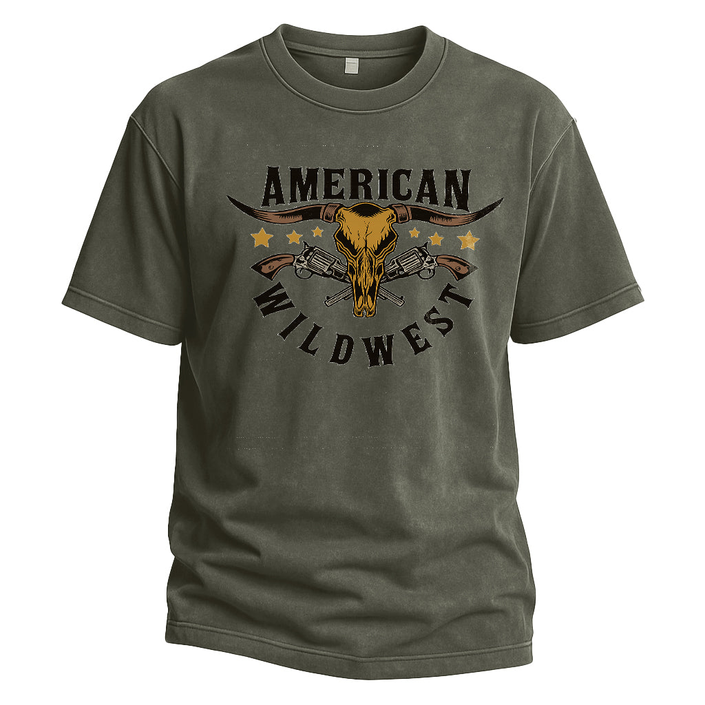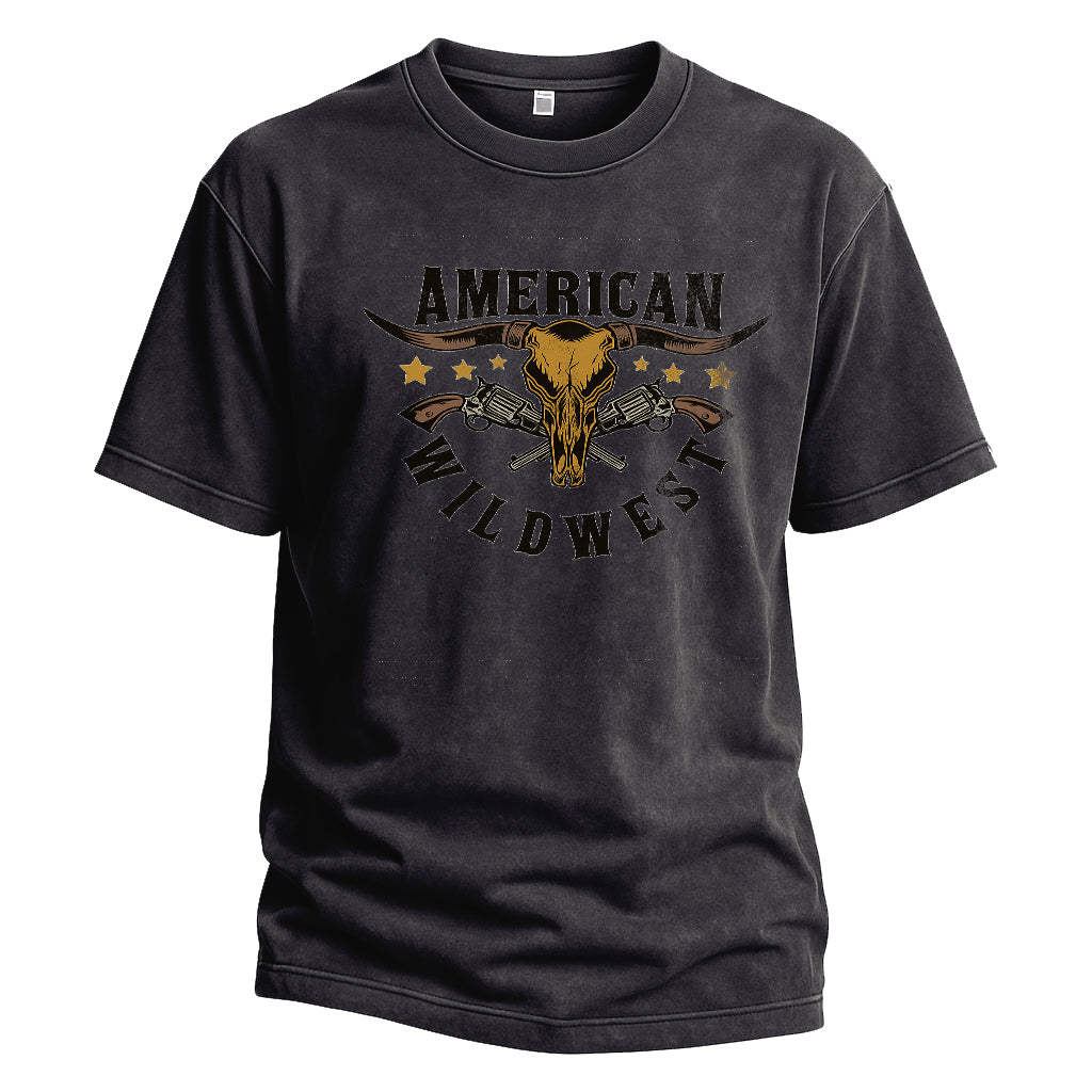 Regular price $ 474.00 MXNCelebrate the spirit of the frontier with LouMark’s American Wild West Tee. This washed navy shirt features a bold graphic of a longhorn skull centered with crossed rifles and surrounded by stars, along with the text “AMERICAN WILD WEST.” Crafted from 100% cotton for lasting comfort and rugged style.