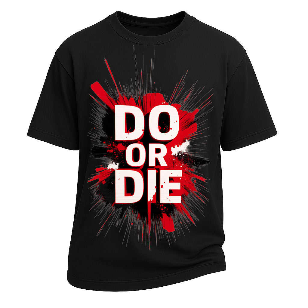 Print Design: Bold "DO OR DIE" text with paint splatter explosion