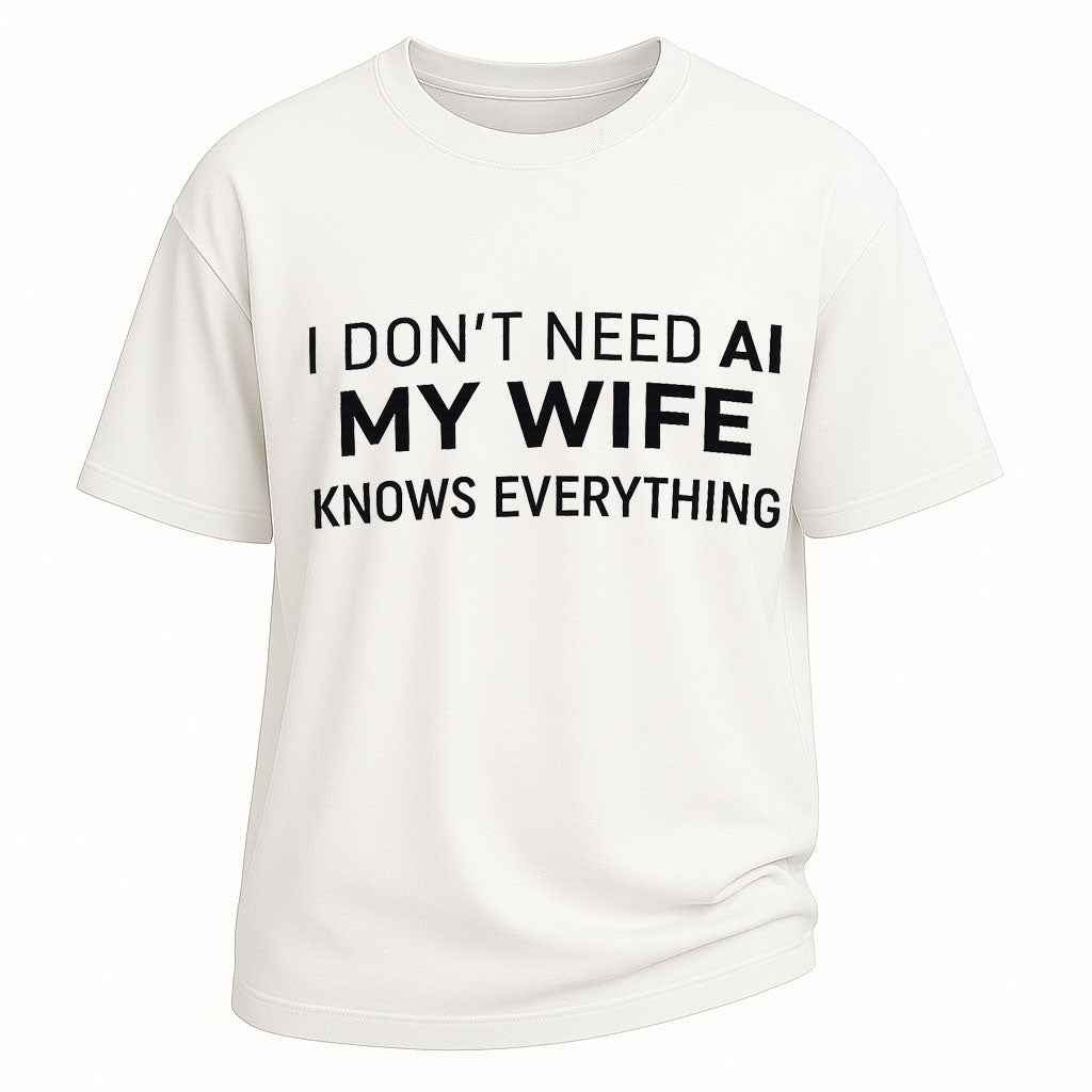 Regular price $ 472.00 MXNBlend modern tech humor with family life in the LouMark "I Don’t Need AI, My Wife Knows Everything" graphic t-shirt. Featuring a witty slogan that pokes fun at artificial intelligence while celebrating family humor, this tee makes a playful and stylish statement. Made with premium heavy-weight cotton, it provides oversized comfort, breathability, and durability for everyday wear.