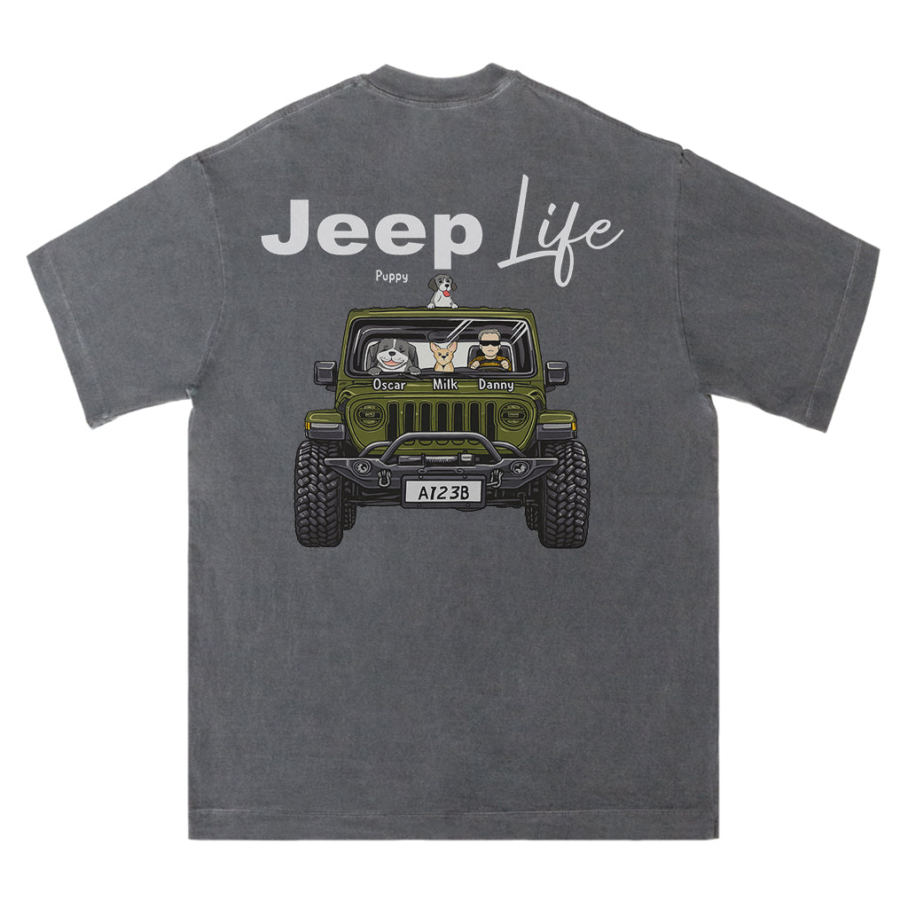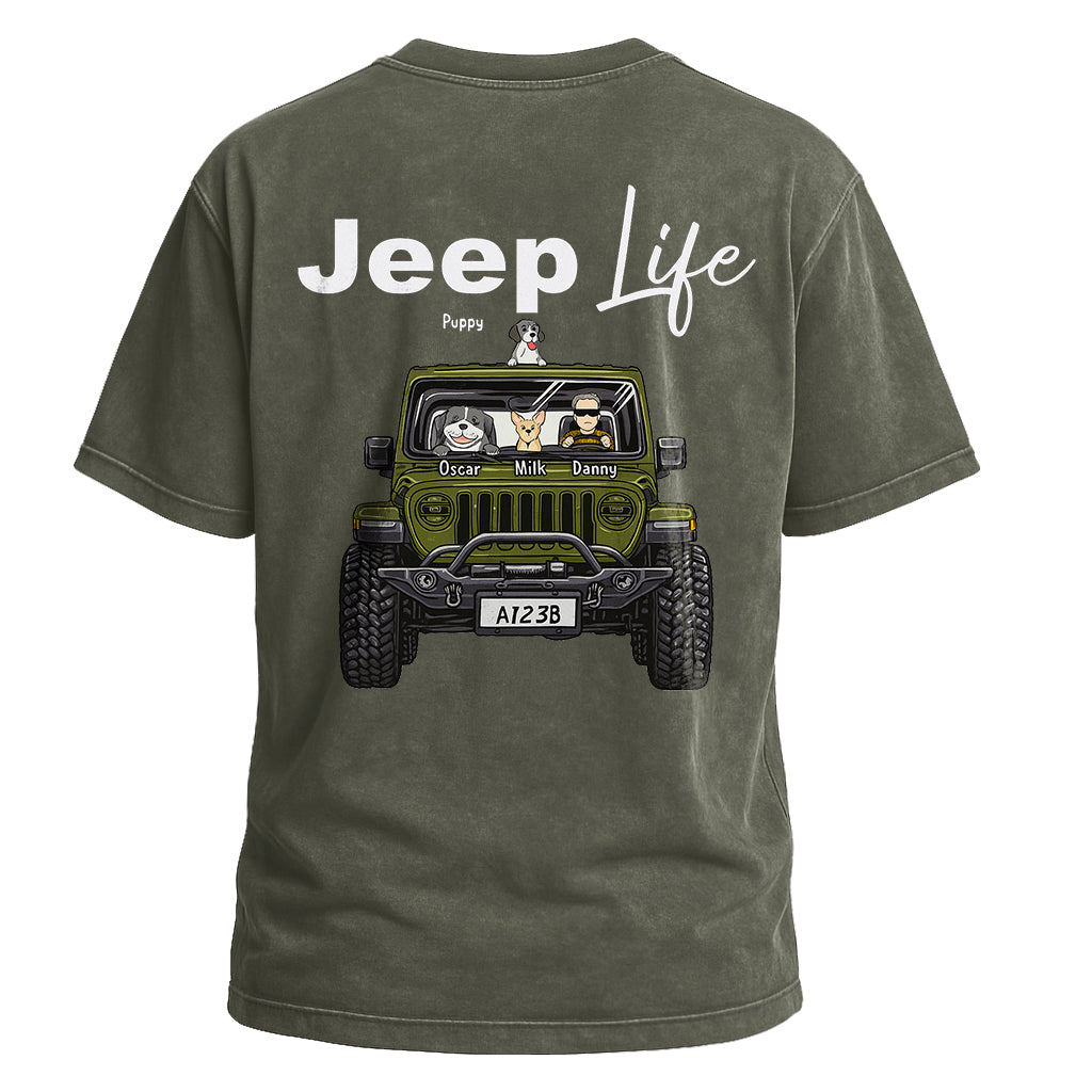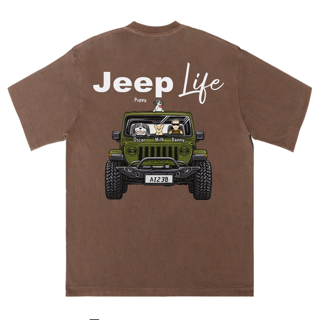 Regular price $ 476.00 MXNEmbrace the rugged lifestyle with LouMark’s Jeep Life Graphic Tee. This washed brown shirt features a detailed vintage-style back graphic of a green Jeep with two dogs inside, accompanied by the bold text “Jeep Life.” Crafted from 100% cotton, it offers comfortable wear and celebrates outdoor adventure.