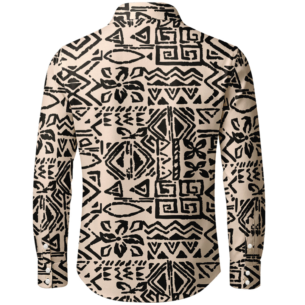 Regular price $ 525.00 MXNMake a statement with this bold long-sleeve button-up featuring a hand-drawn, tribal-inspired geometric print in deep black over warm sand. The smooth 100% polyester fabric is lightweight, wrinkle-resistant, and quick-drying—easy to wear from street style to vacations and nights out.