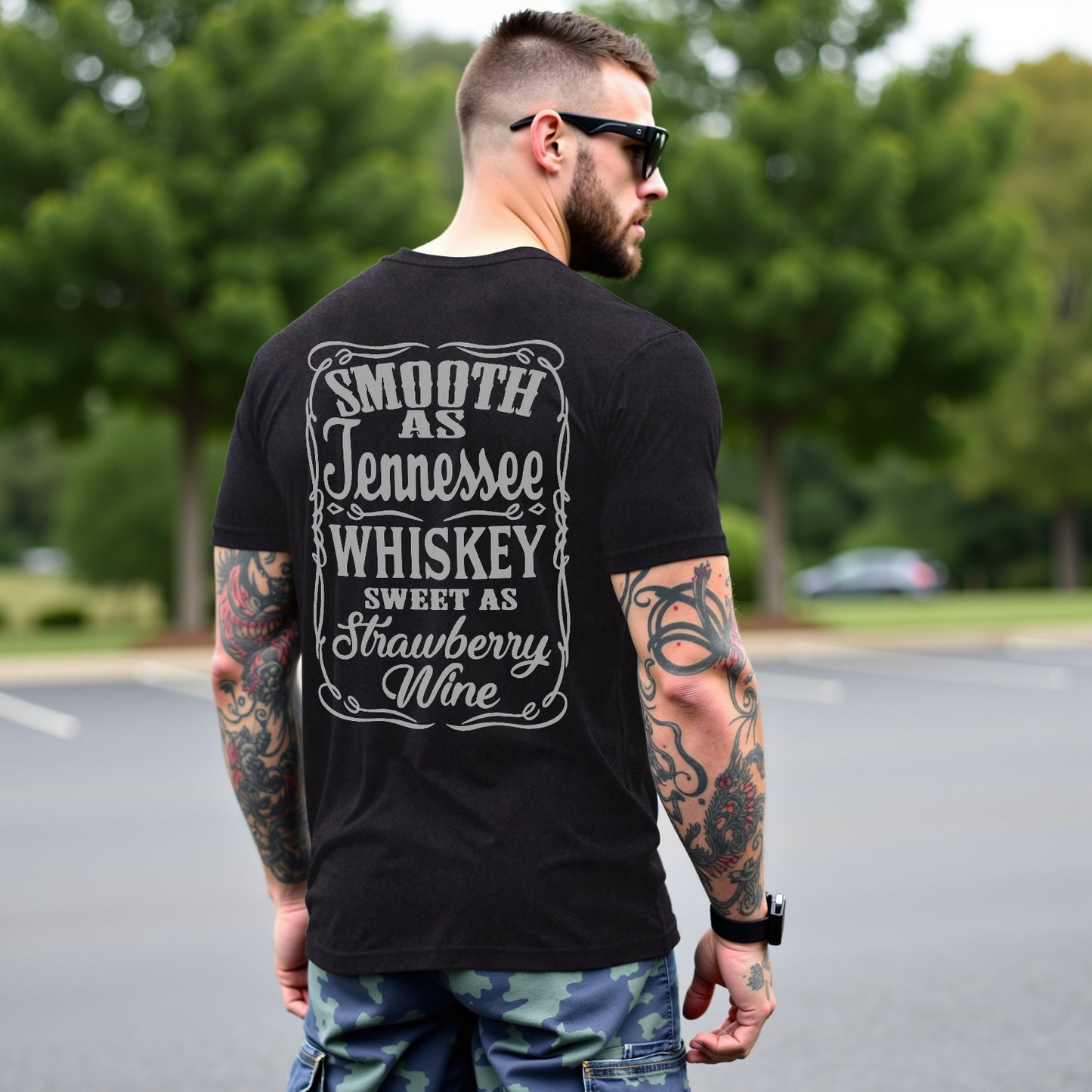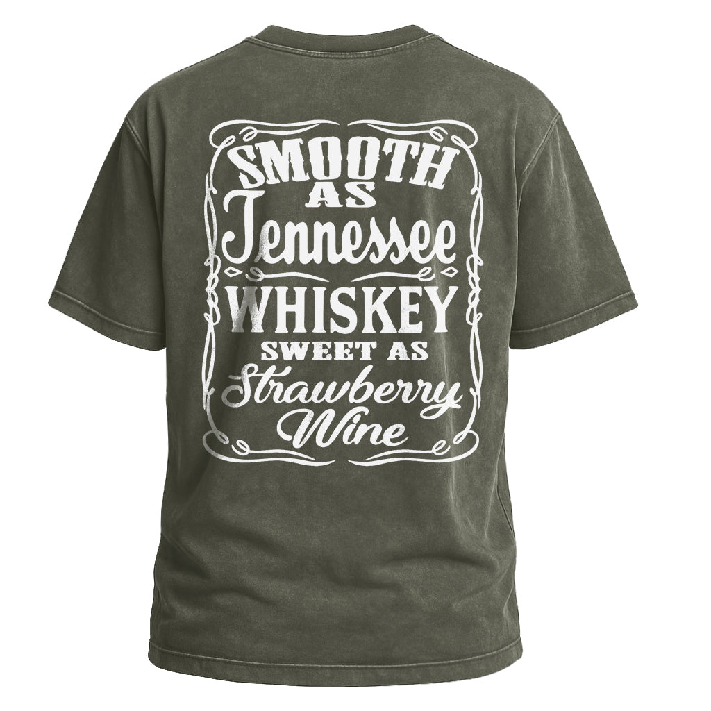 Regular price $ 474.00 MXNCelebrate the smooth taste of Tennessee with LouMark’s Smooth Tennessee Whiskey Tee. This washed brown shirt features a vintage-style white typography graphic with the phrase “SMOOTH AS TENNESSEE WHISKEY SWEET AS STRAWBERRY WINE,” framed by decorative elements. Made from 100% cotton for comfortable, casual wear.