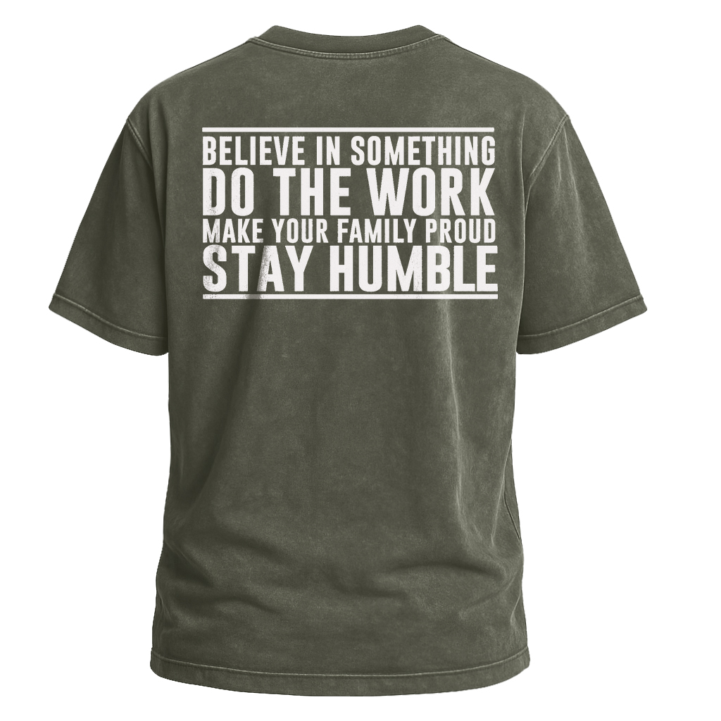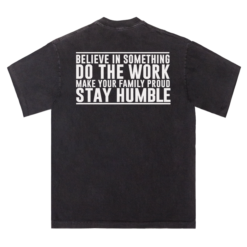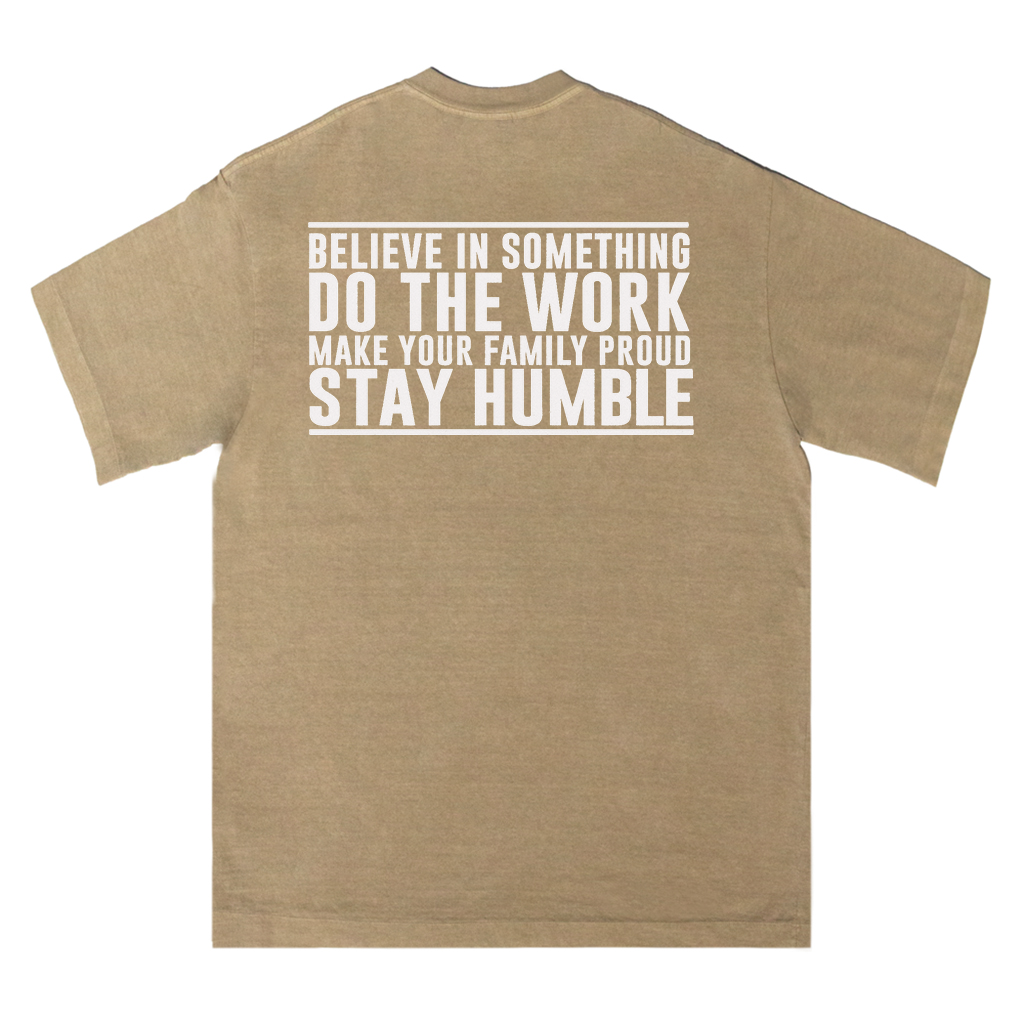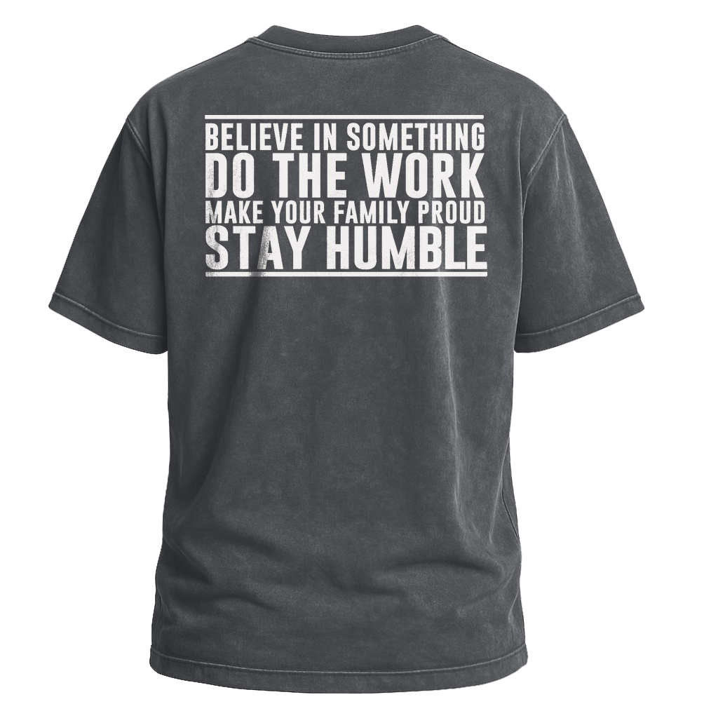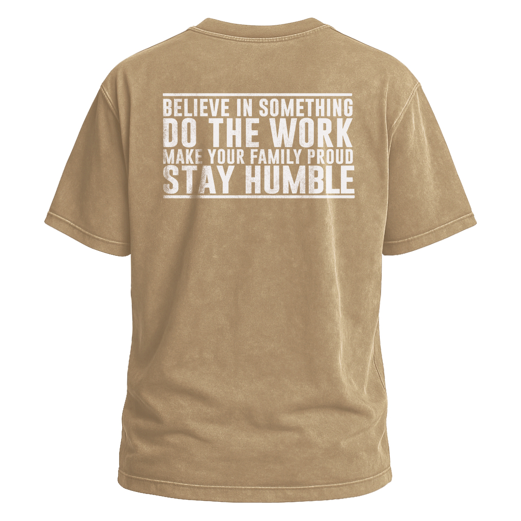 Prix régulier $ 476.00 MXNInspire with LouMark’s Believe Do Work Stay Humble Tee. This washed brown shirt features bold white typography reading “BELIEVE IN SOMETHING DO THE WORK MAKE YOUR FAMILY PROUD STAY HUMBLE.” Crafted from 100% cotton for comfortable wear with a motivational message.