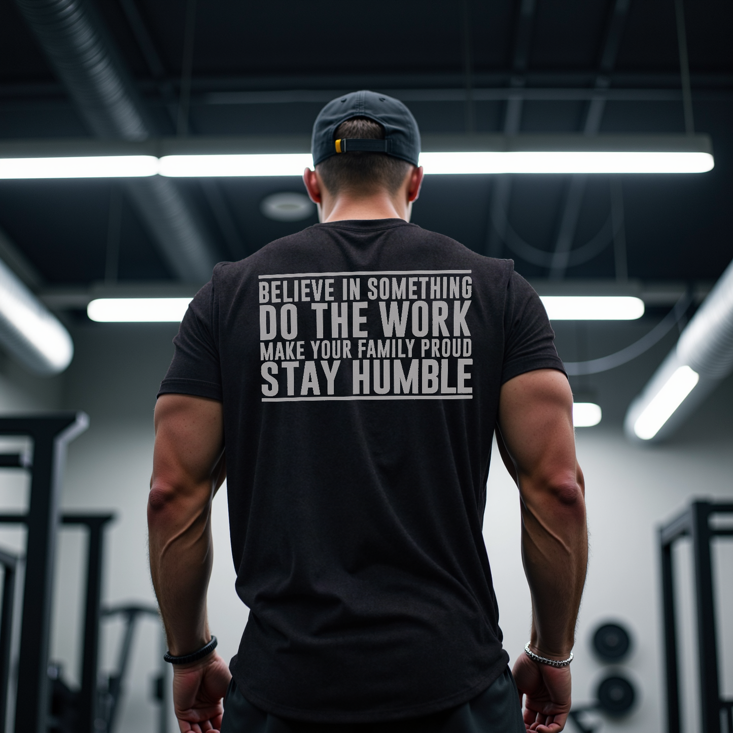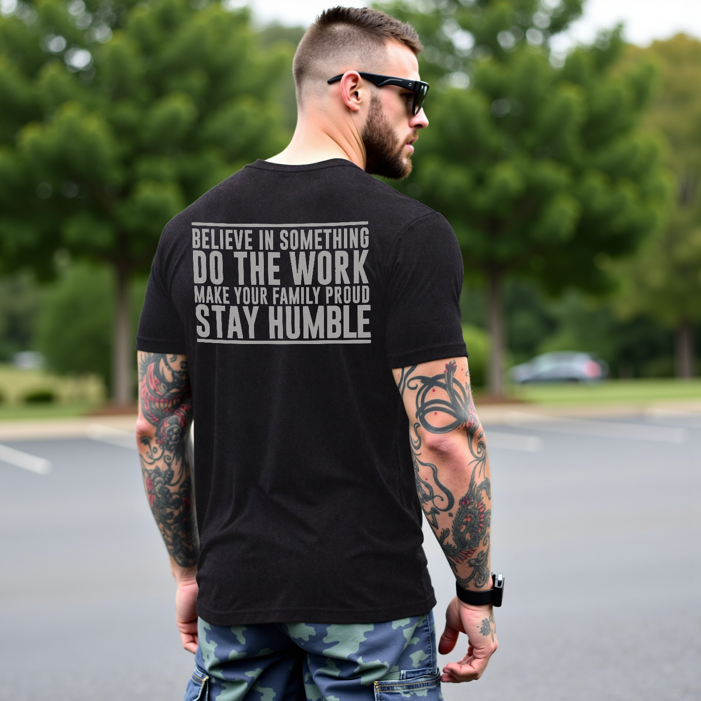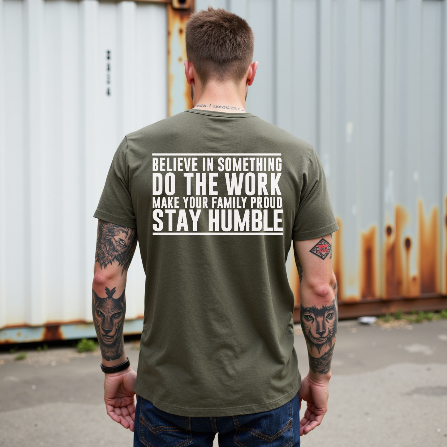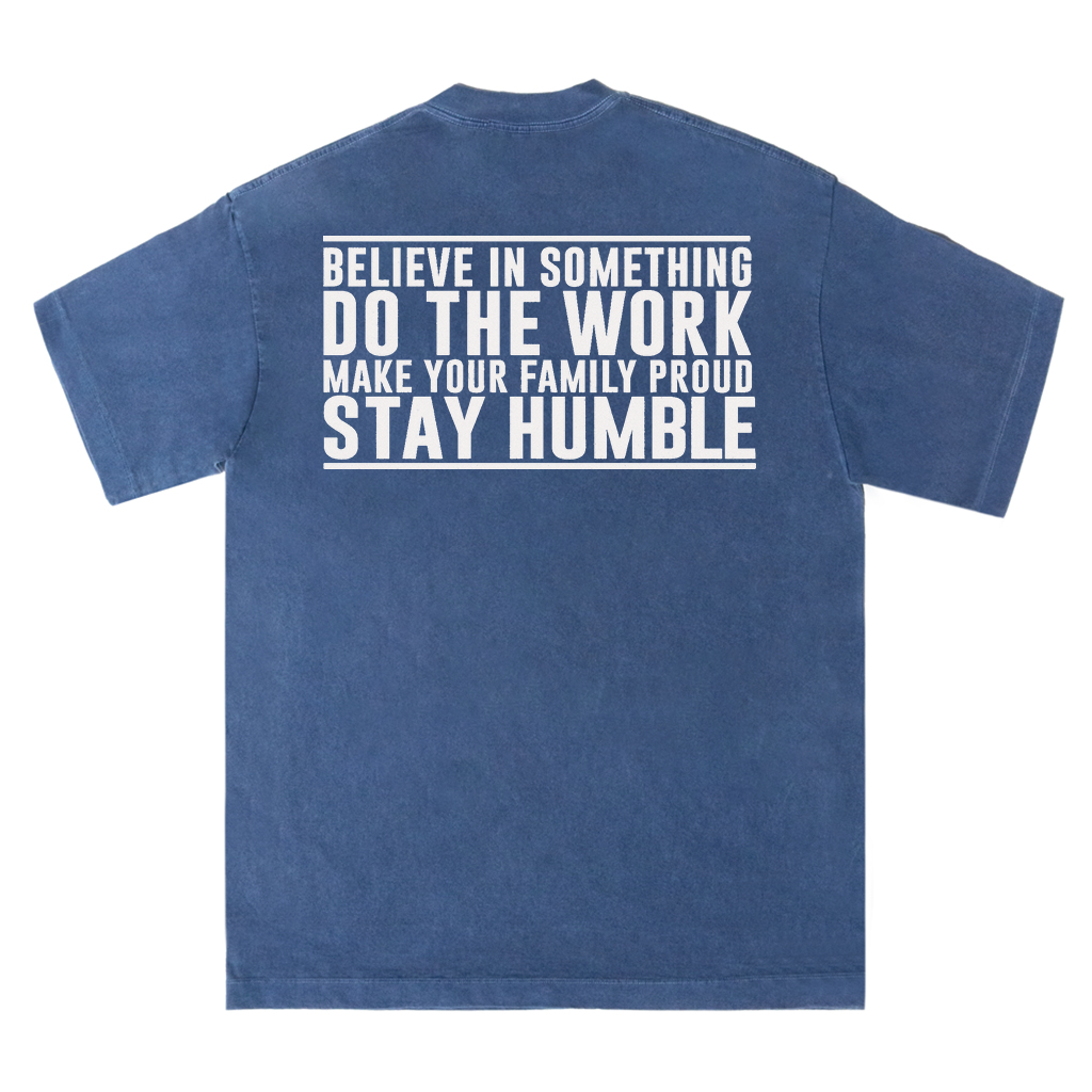 Prix régulier $ 476.00 MXNInspire with LouMark’s Believe Do Work Stay Humble Tee. This washed brown shirt features bold white typography reading “BELIEVE IN SOMETHING DO THE WORK MAKE YOUR FAMILY PROUD STAY HUMBLE.” Crafted from 100% cotton for comfortable wear with a motivational message.