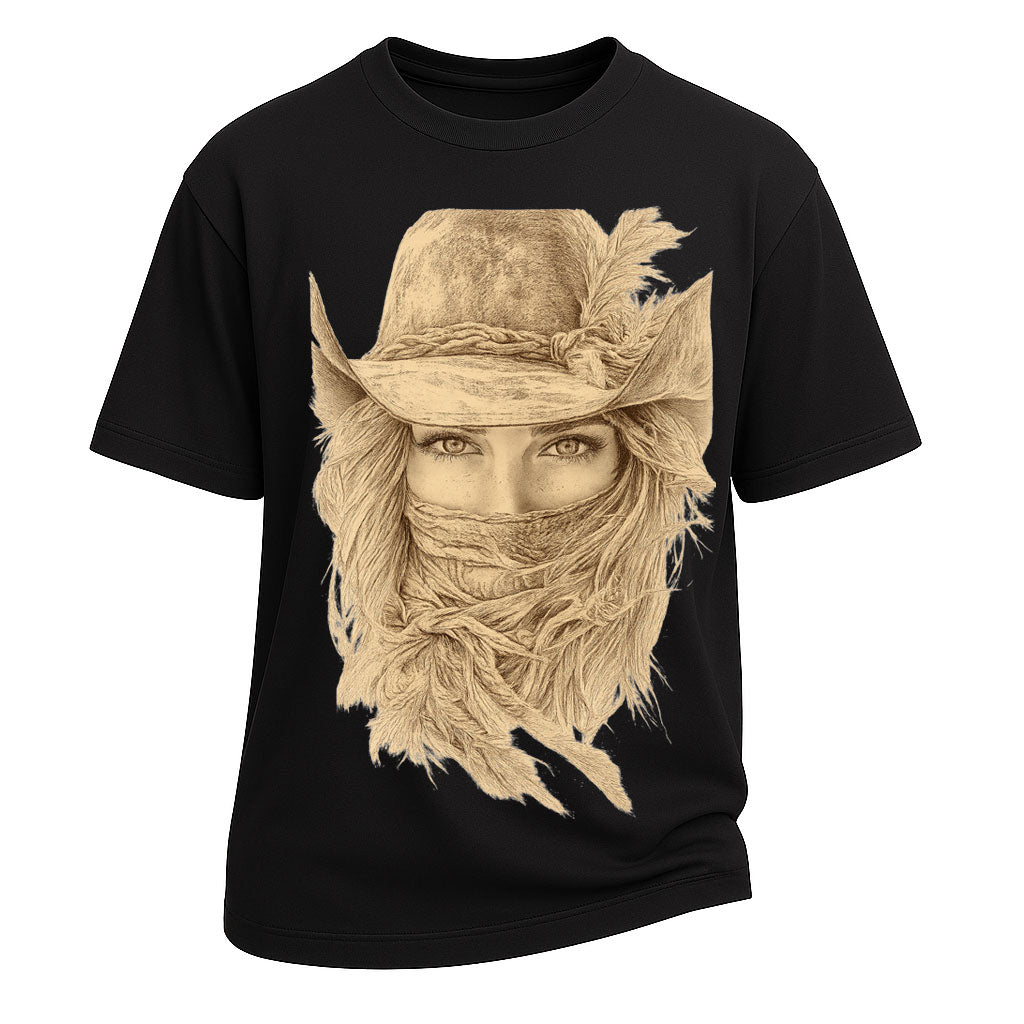 Prix régulier $ 403.00 MXNMysterious, fierce, and unmistakably Western. The "Cowgirl Eyes" tee captures the essence of rugged femininity with a sepia-toned illustration of a veiled cowgirl staring straight through your soul. Printed on heavyweight 260g 100% cotton, this LouMark tee embodies both softness and grit. For those who ride with quiet strength and fearless beauty.