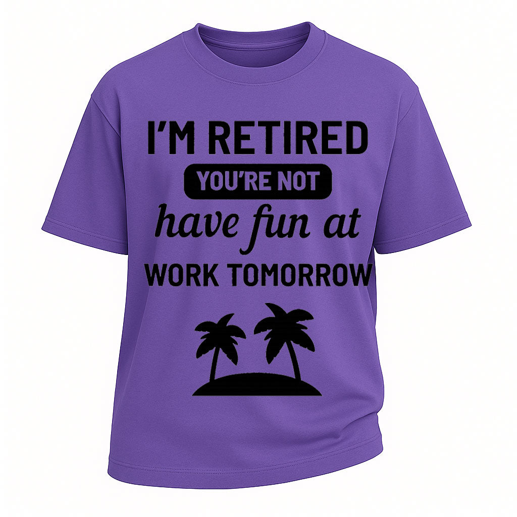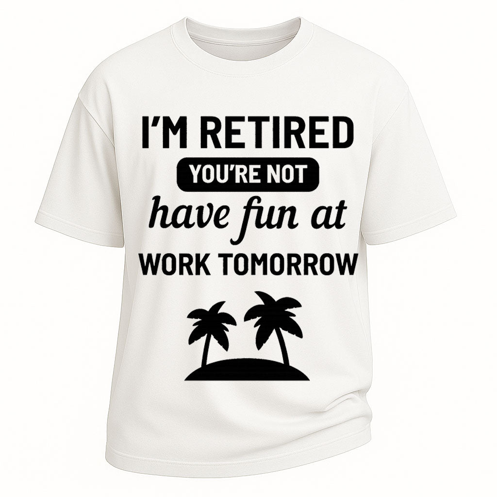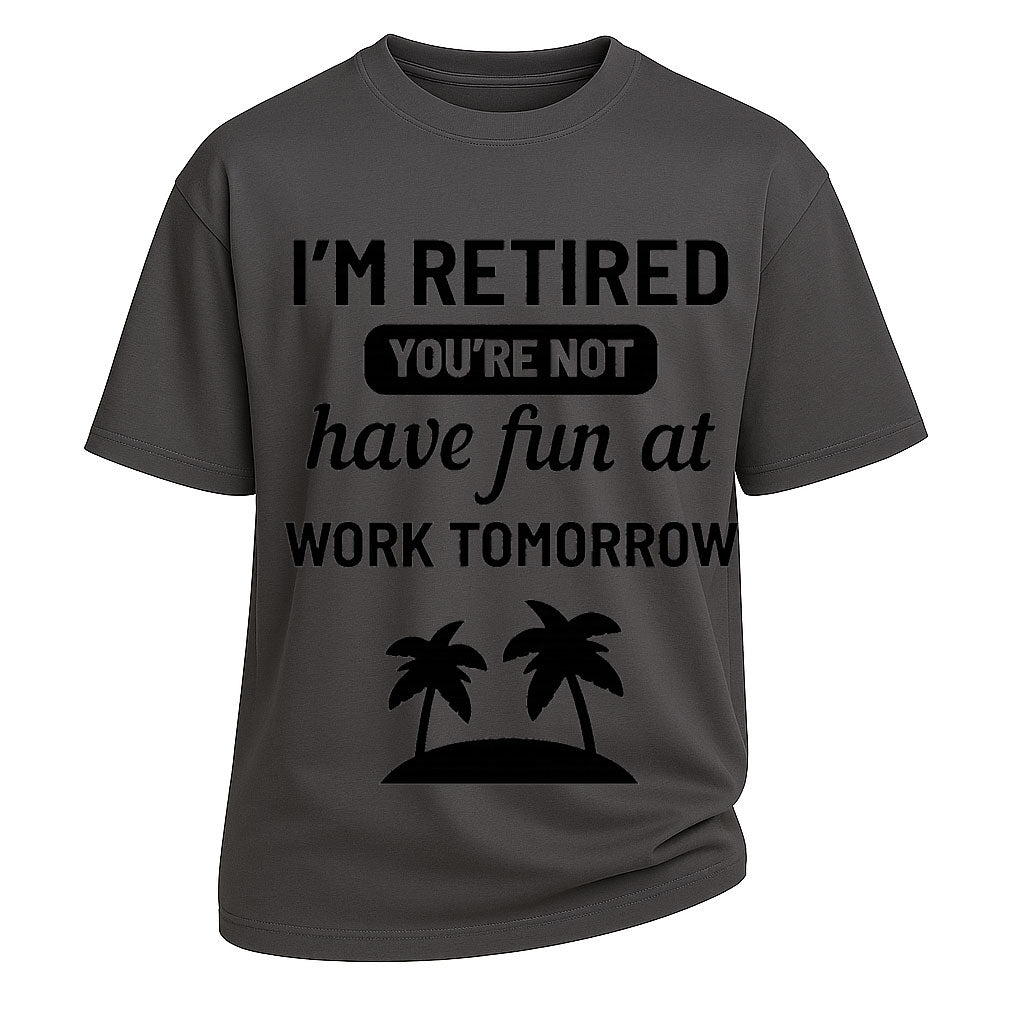 Prix régulier $ 476.00 MXNDeclare your freedom with LouMark's ultimate retirement flex. This graphic tee reads: "I’m retired. You’re not. Have fun at work tomorrow." Perfect for those who've earned their rest—and love to rub it in. Made from thick 260g cotton with a laid-back fit, it pairs humor and comfort for every off-duty legend who’s earned the right to laugh loud.