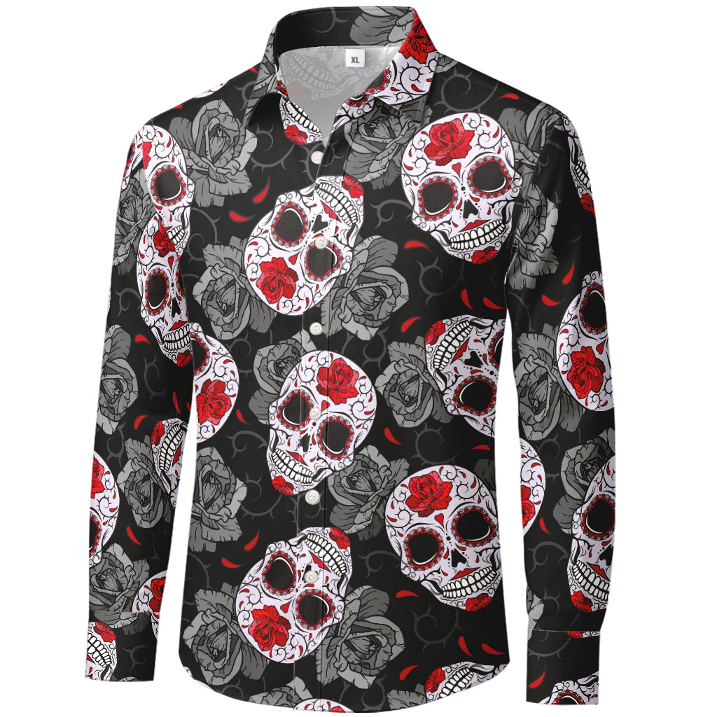 Sugar Skull & Red Rose Long-Sleeve Shirt