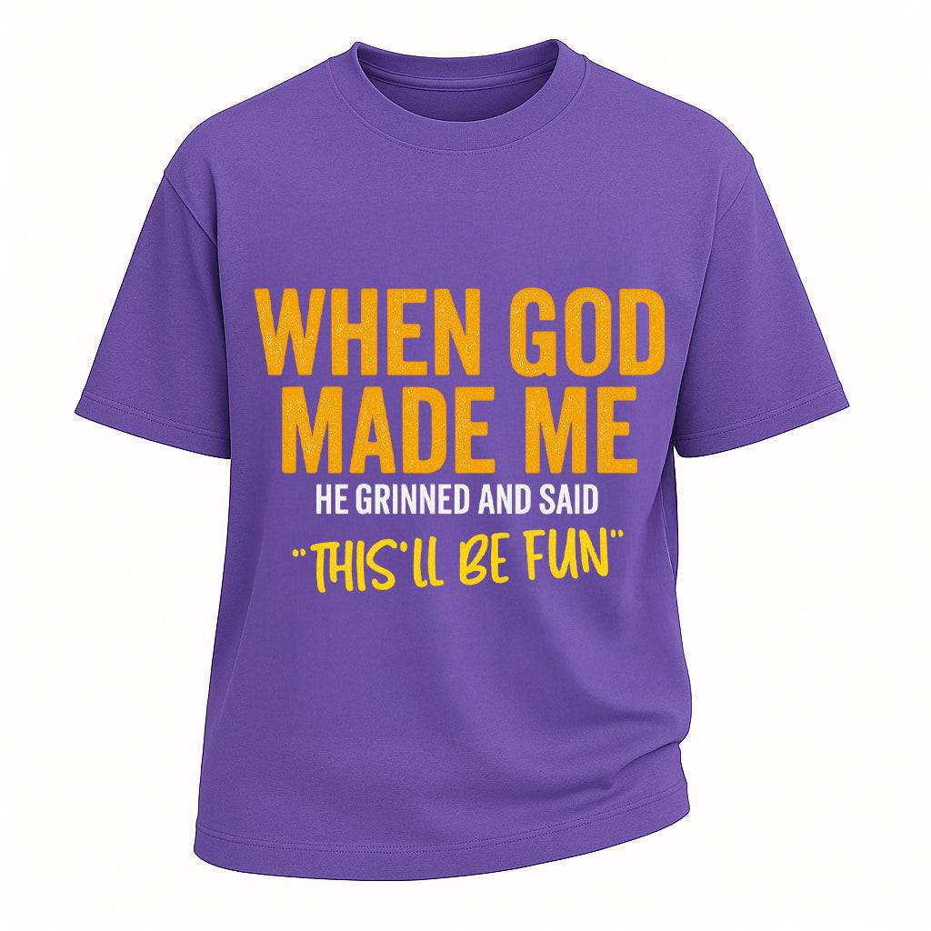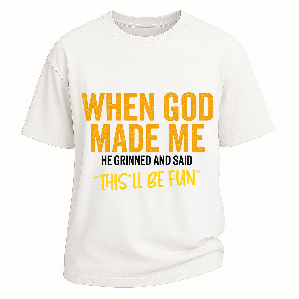 Maglietta "Dio mi ha creato" "Questo sarà divertente"