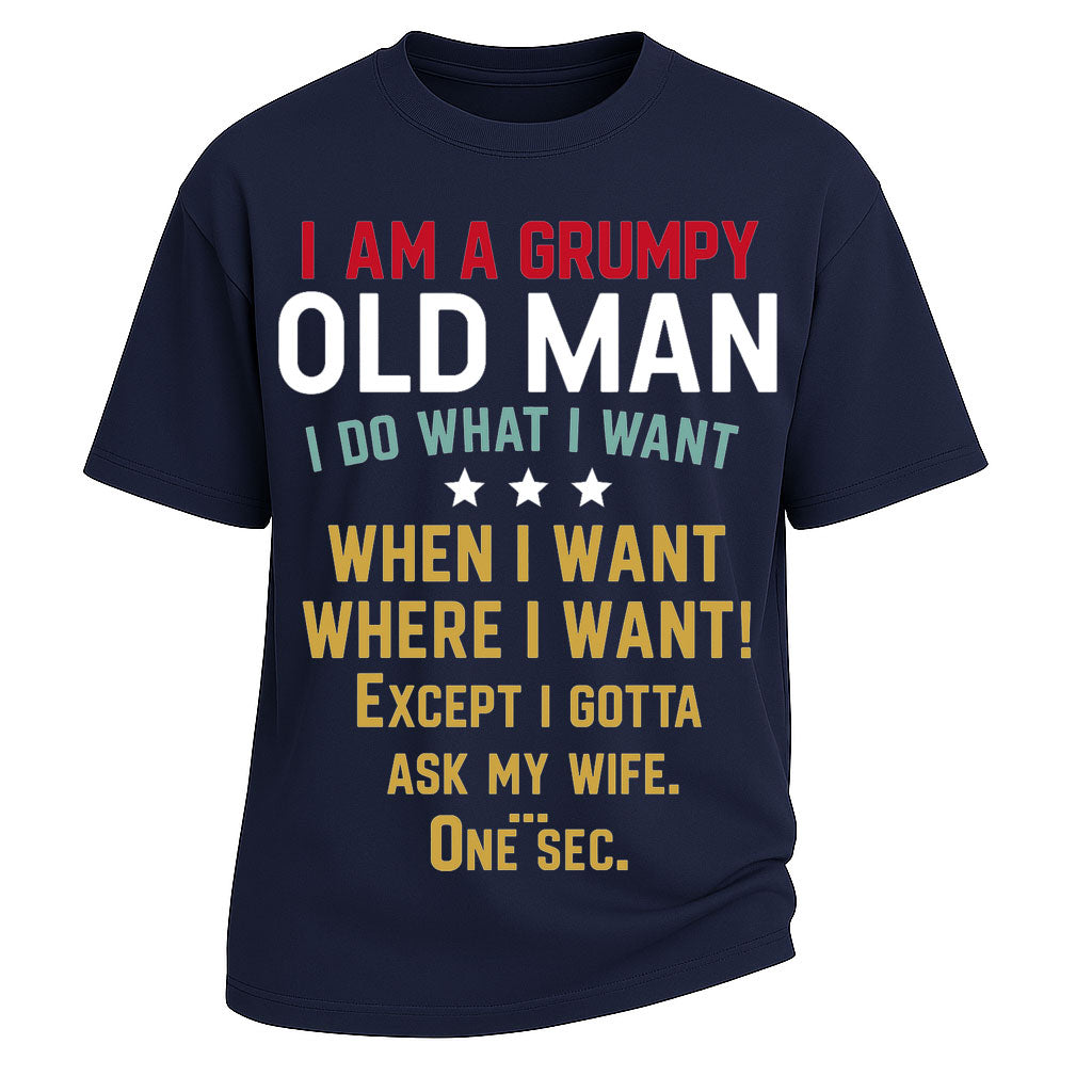Maglietta "Vecchio brontolone, chiedi a mia moglie"