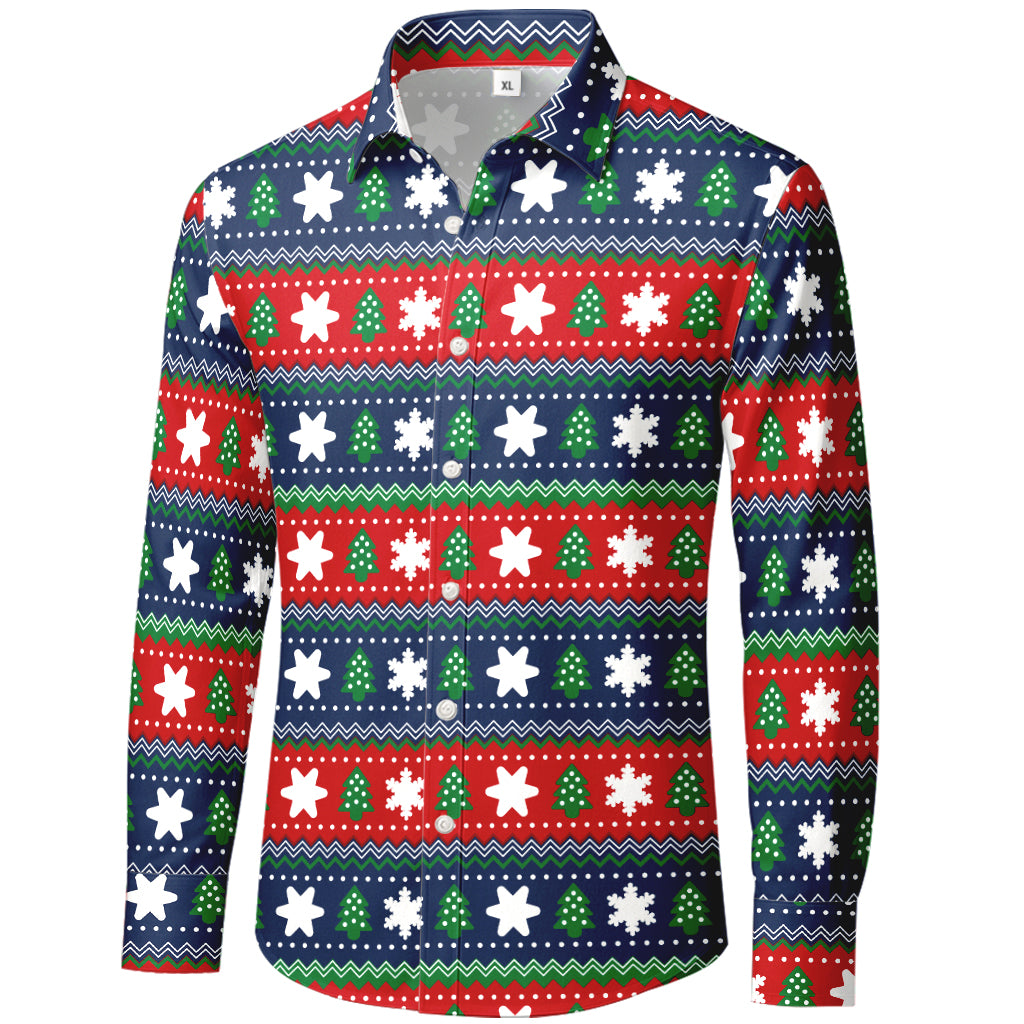 Prezzo normale $ 525.00 MXNPorta l'allegria delle feste in ogni stanza con questa allegra camicia a maniche lunghe con bottoni. Fiocchi di neve, stelle e alberi di Natale risaltano in bianco su righe blu navy, rosse e verdi, conferendole un'aria giocosa da "maglione brutto" in un'elegante silhouette a camicia. Il tessuto liscio in 100% poliestere è leggero, antipiega e ad asciugatura rapida, perfetto per feste, celebrazioni in ufficio e accoglienti serate invernali.