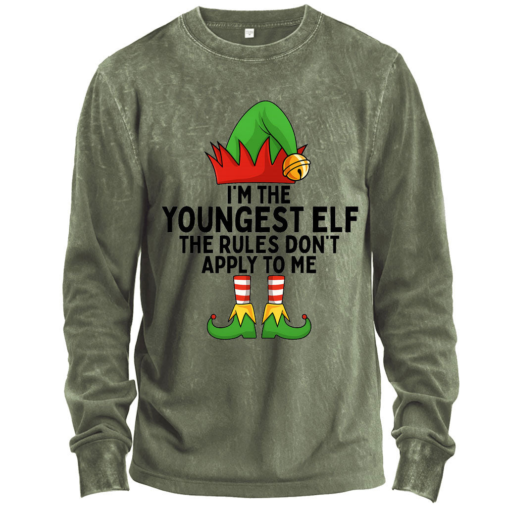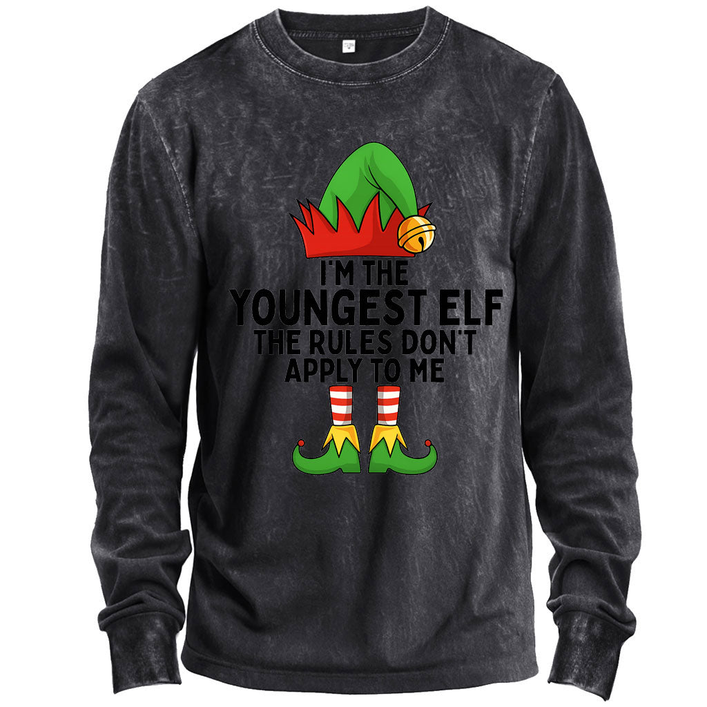 Maglietta natalizia a maniche lunghe "Sono l'elfo più giovane"