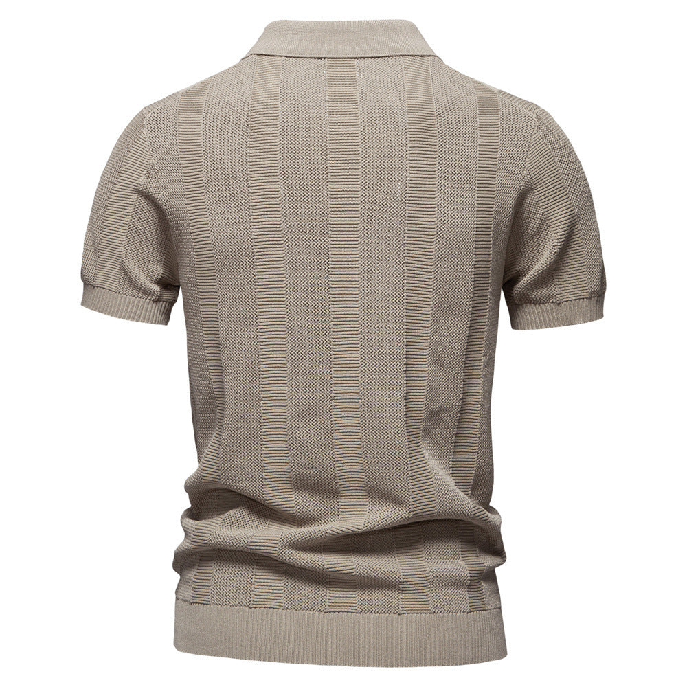 Con un drappeggio strutturato e un delicato gioco di texture, questa polo a maniche corte LouMark reinterpreta la classica maglieria in chiave western moderna. L'alternanza di righe a maglia cava, i bordi a coste e il profondo colletto con spacco la rendono un capo esclusivo per chi ama muoversi con stile e agio.