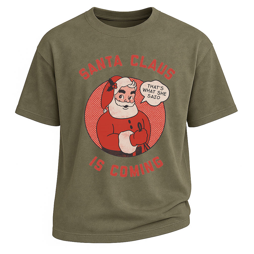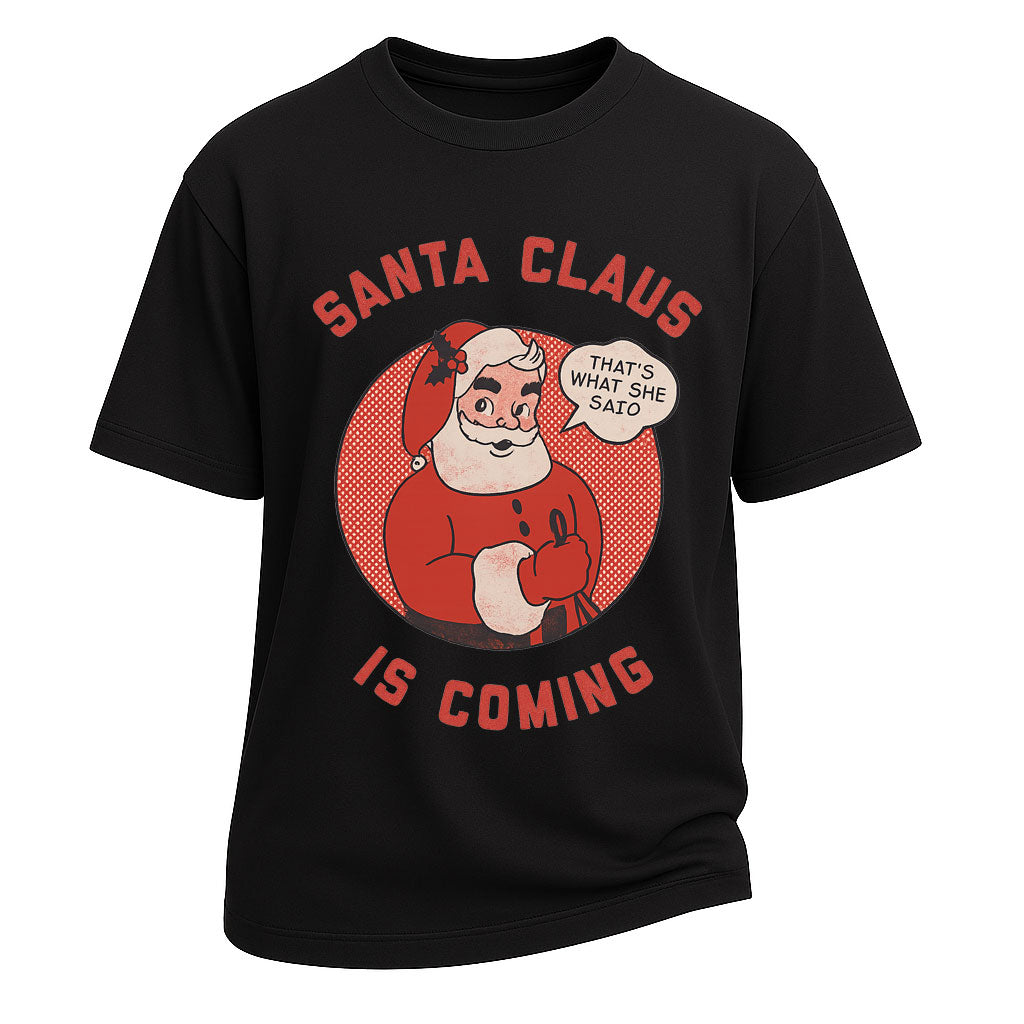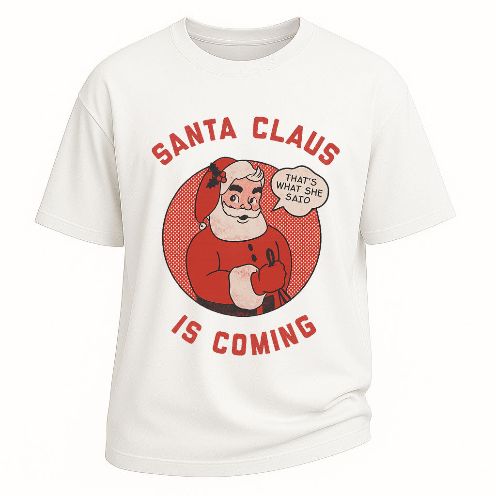 Maglietta natalizia divertente con Babbo Natale che sta arrivando
