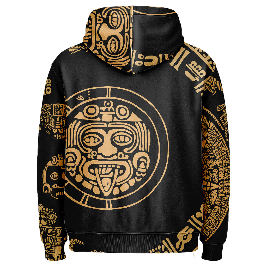 Precio regular $ 613.00 MXNBold, mythic, and effortlessly cozy. This all-over print hoodie showcases a striking gold Aztec sun glyph and surrounding icons on deep black. A soft interior and relaxed unisex fit make it an easy layer from crisp mornings to late-night hangs.