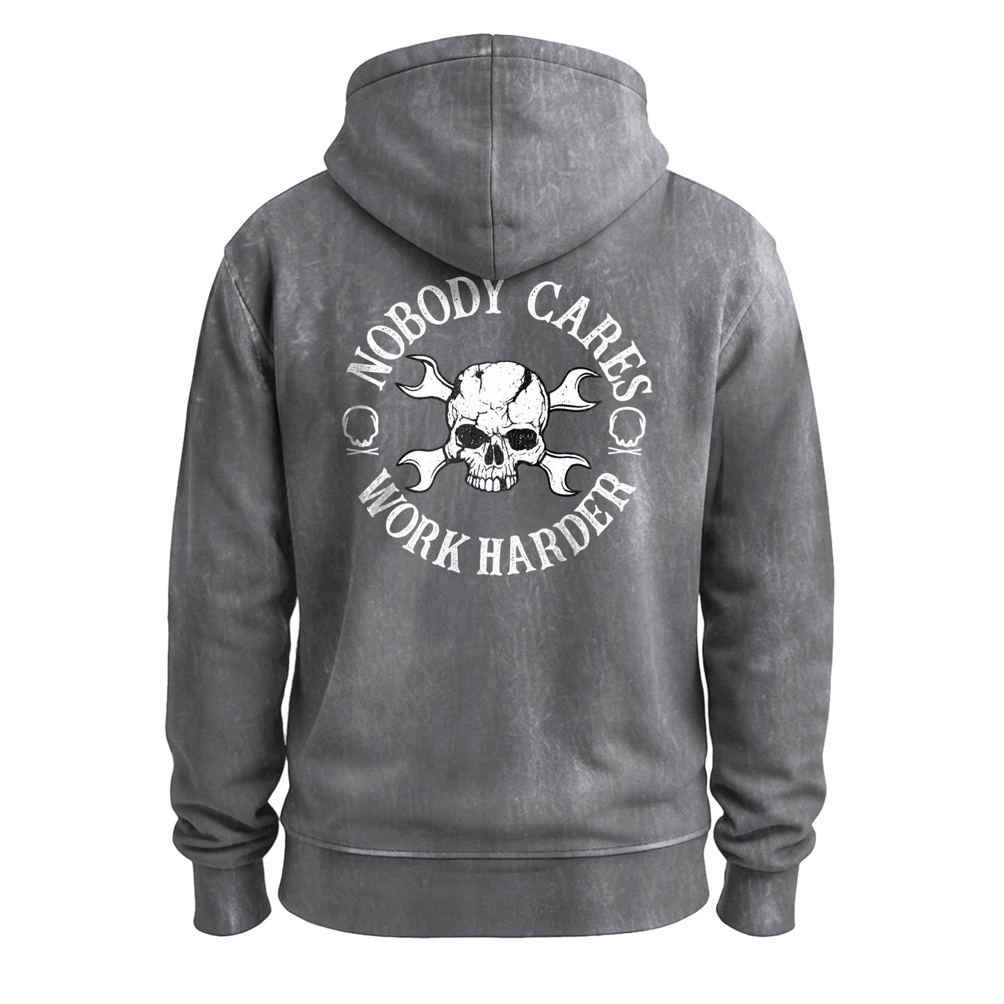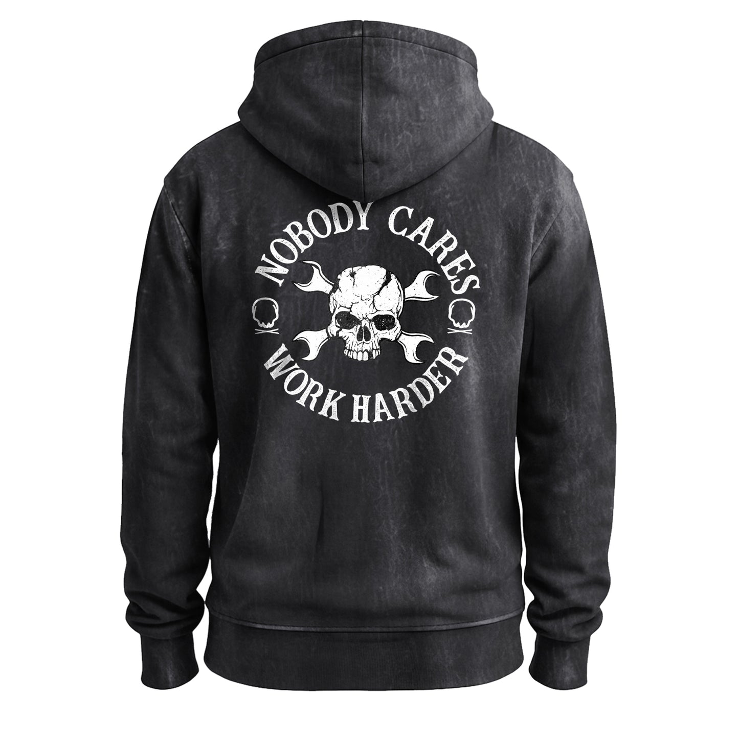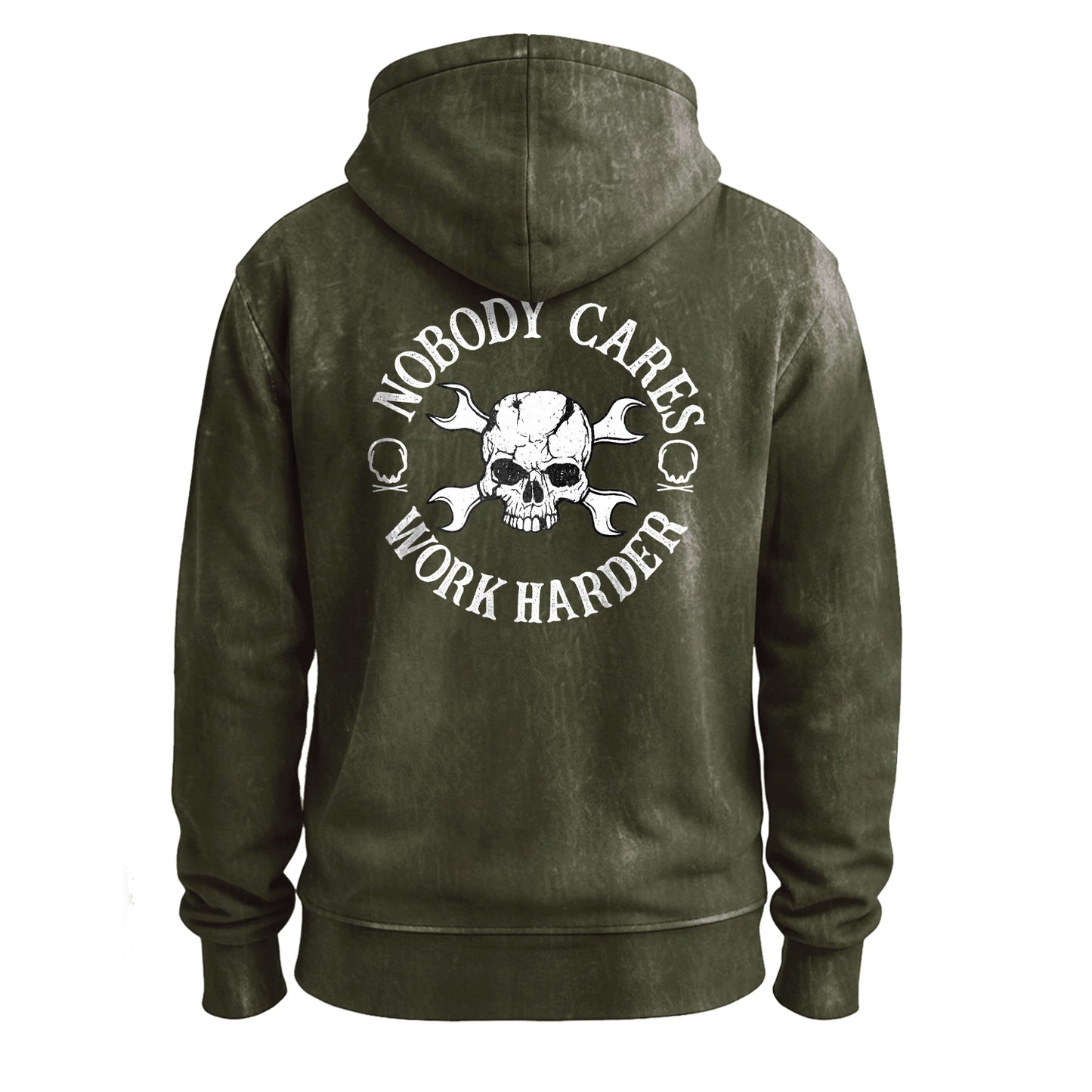 Precio regular $ 788.00 MXNBuilt for grinders and go-getters. This vintage-washed army-green hoodie features a bold white circle graphic that reads “Nobody Cares, Work Harder,” wrapped around a cracked skull with crossed wrenches. Cut from beefy 350g 100% cotton for a soft, broken-in feel right out of the bag.