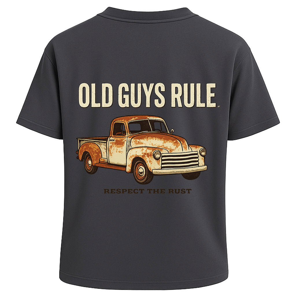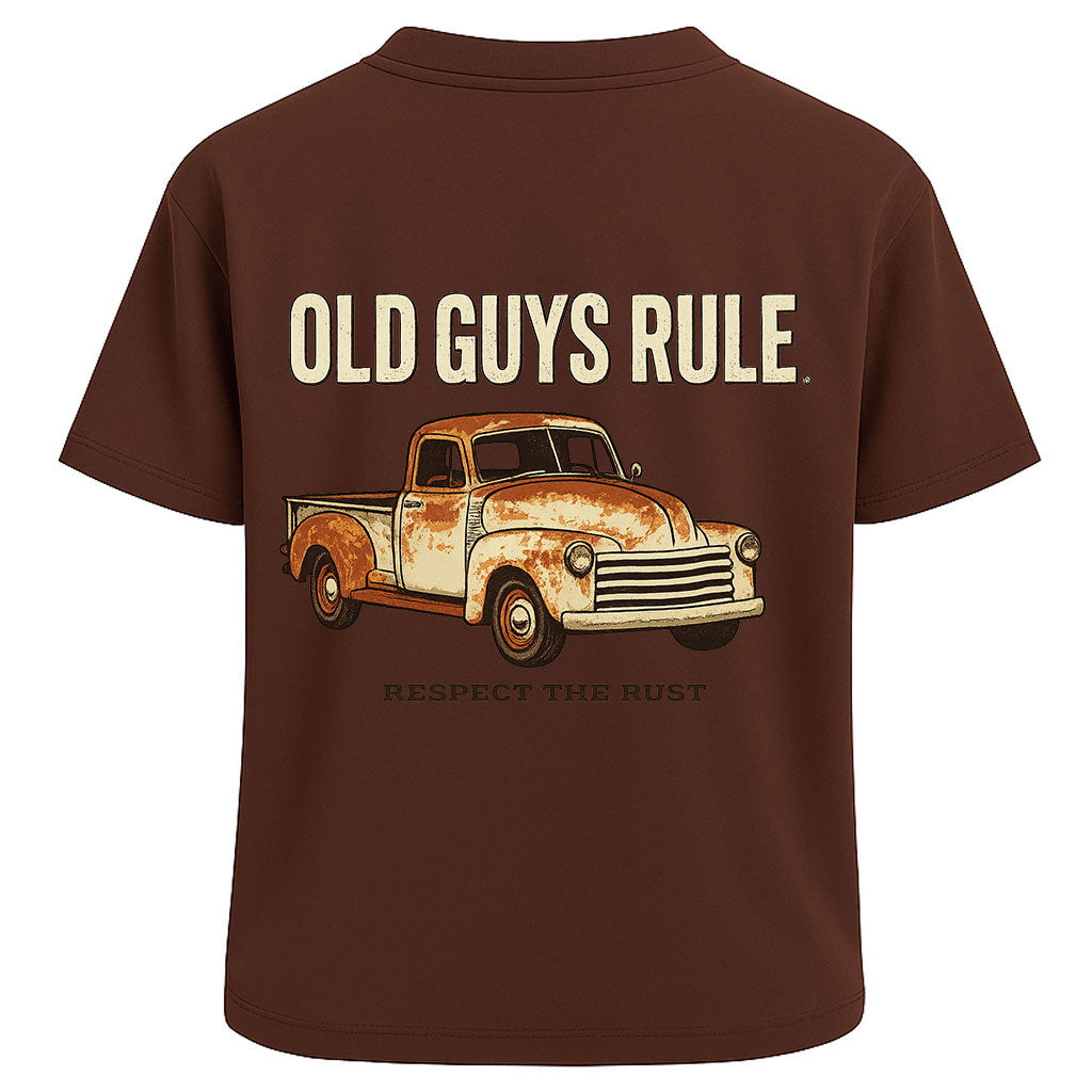 Precio regular $ 402.00 MXNSome things get better with age — including you. This tee says it all with a rusted-out vintage pickup truck and the bold message: “Old Guys Rule. Respect the Rust.” It’s a tribute to time-earned wisdom, grit, and character.