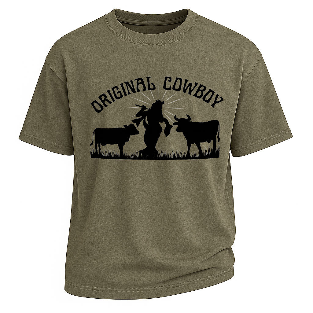 Precio regular $ 476.00 MXNCelebrate the heritage of the American West with the LouMark "Original Cowboy" graphic t-shirt. Featuring a striking silhouette of a cowboy standing proudly between two cattle, this design pays homage to ranch life and cowboy culture. Made with premium heavy-weight cotton, it combines oversized comfort, breathability, and rugged durability, making it ideal for both casual streetwear and western lifestyle fashion.