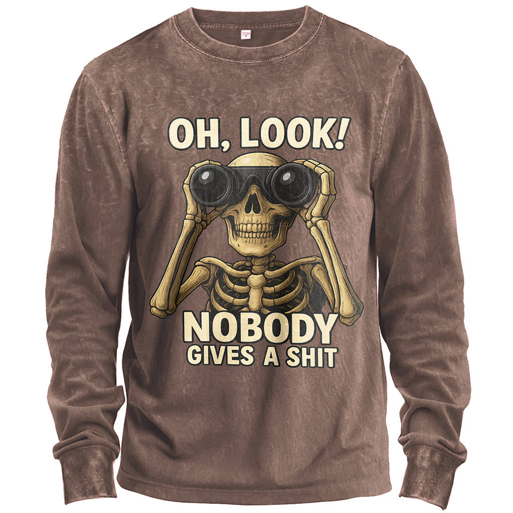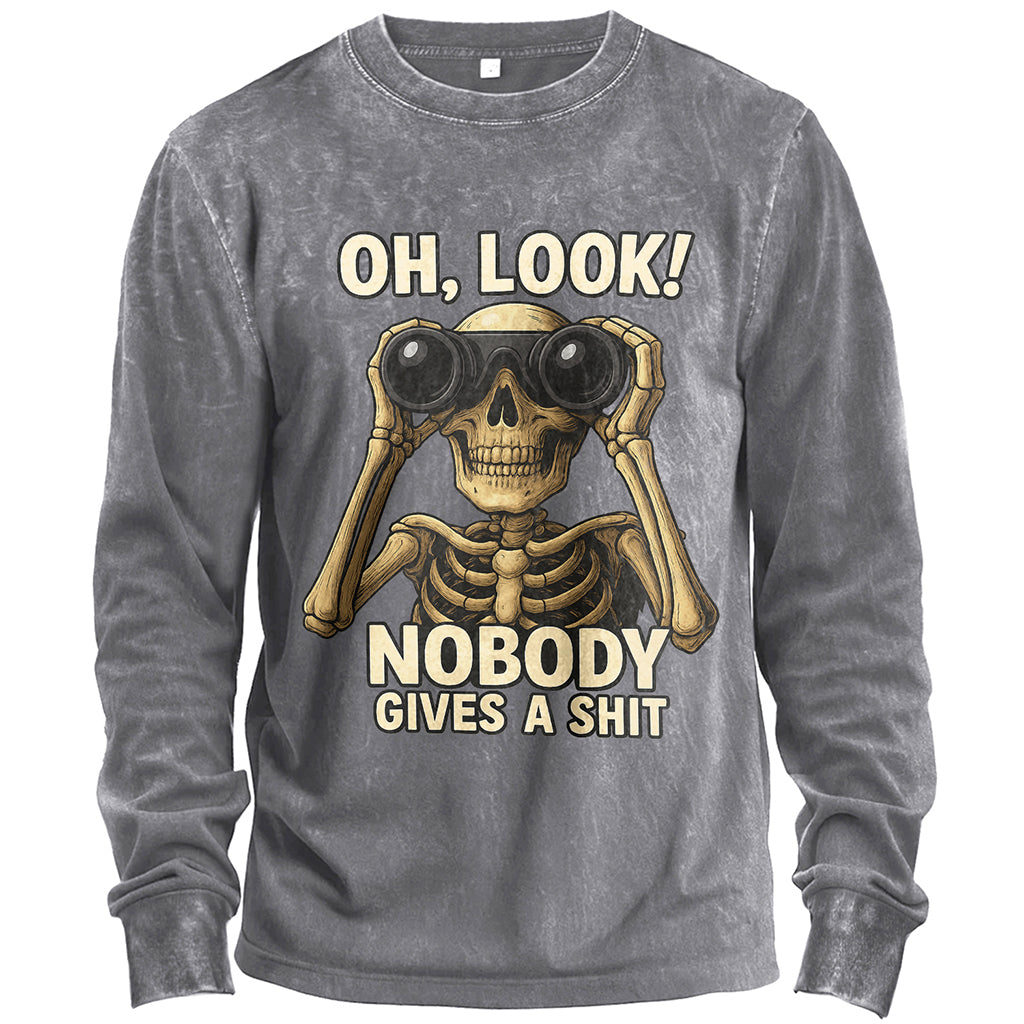 Precio regular $ 438.00 MXNMake a bold statement with LouMark’s Skeleton Binoculars long-sleeve t-shirt. Built from 230G 100% cotton, this shirt blends rugged durability with everyday comfort. Featuring a standard fit cut, it works perfectly as a solo top or layered under outerwear. The front showcases a striking skeleton holding binoculars with the words “Oh, Look! Nobody Gives A Shit,” delivering a rebellious and humorous edge. Finished with ribbed cuffs and a crew neckline, it’s an instant conversation starter for streetwear culture.
