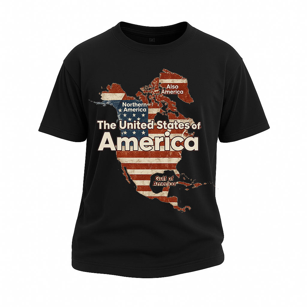 Preço Regular $ 403.00 MXNGeography fail or patriotic joke? This T-shirt cleverly (and sarcastically) relabels all of North America as “America”—from "Also America" to "Gulf of America." Designed for those who love satire, bold humor, and a good conversation starter.