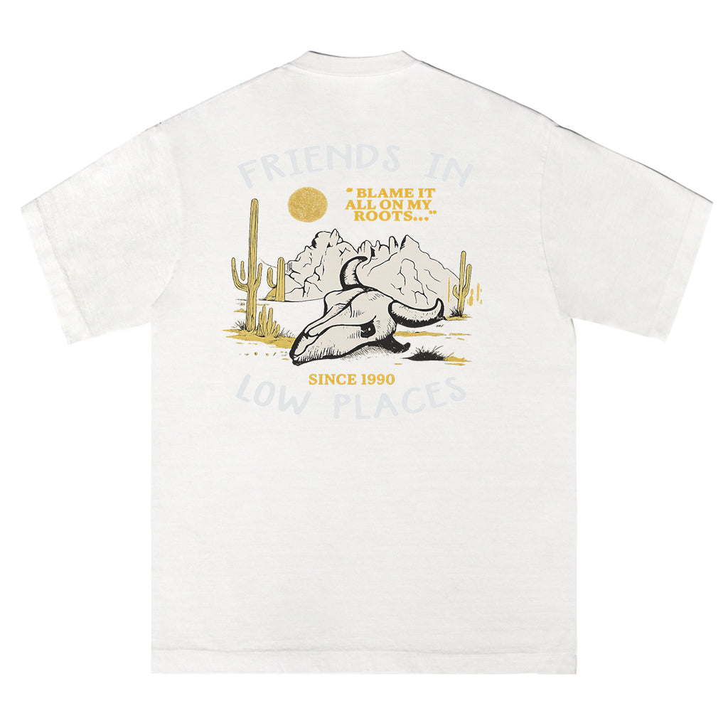 Preço Regular $ 472.00 MXNCelebrate country camaraderie with LouMark’s Friends in Low Places Tee. This washed brown shirt features a vintage-style back graphic of a cowboy tipping his hat in a desert scene, surrounded by cacti and the phrases “FRIENDS IN LOW PLACES” and “BLAME IT ALL ON MY ROOTS... SINCE 1950.” Made from 100% cotton for comfort and rugged style.