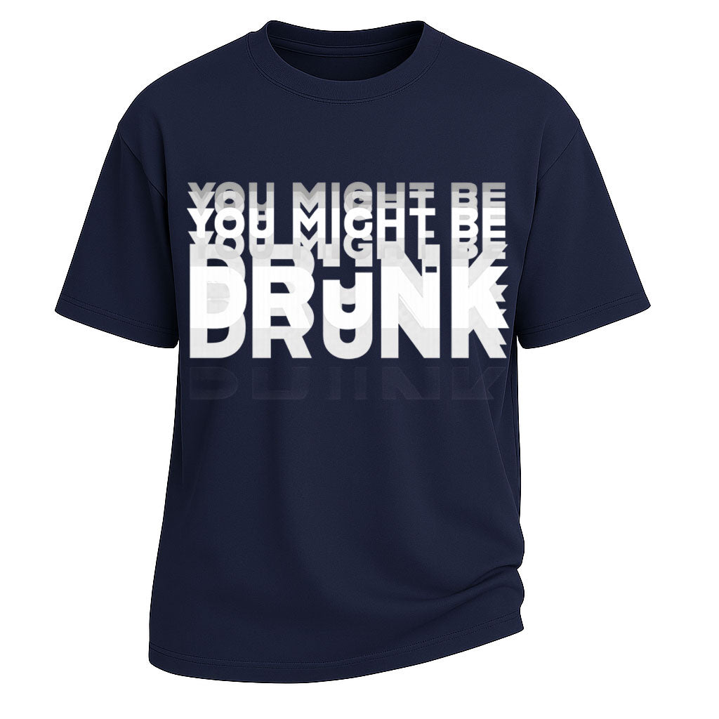 - Pattern: Bold slogan text “YOU MIGHT BE DRUNK”